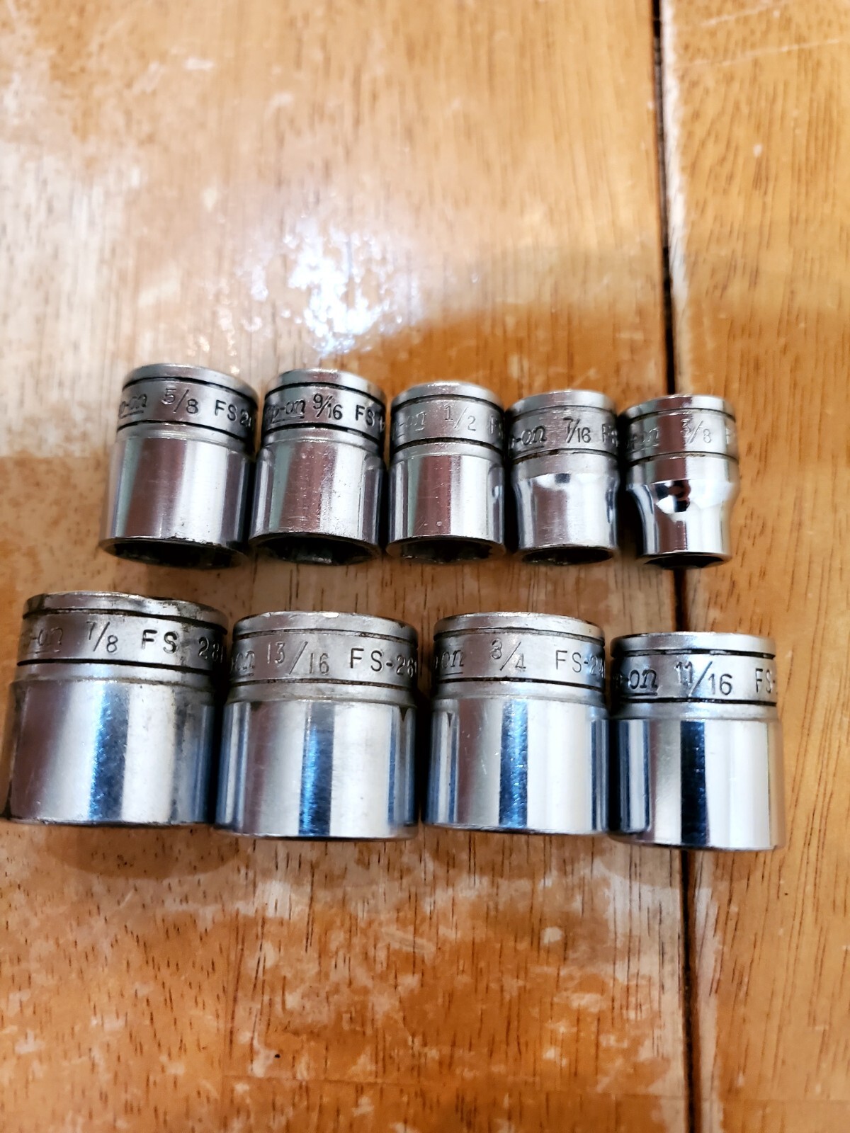 Snap On 3/8 Drive 3/8-7/8 6PT Shallow Sockets Lot Of 9.Sizes:3/8,7/16,1/2,9/16,5/8,11/16,3/4,13/16,