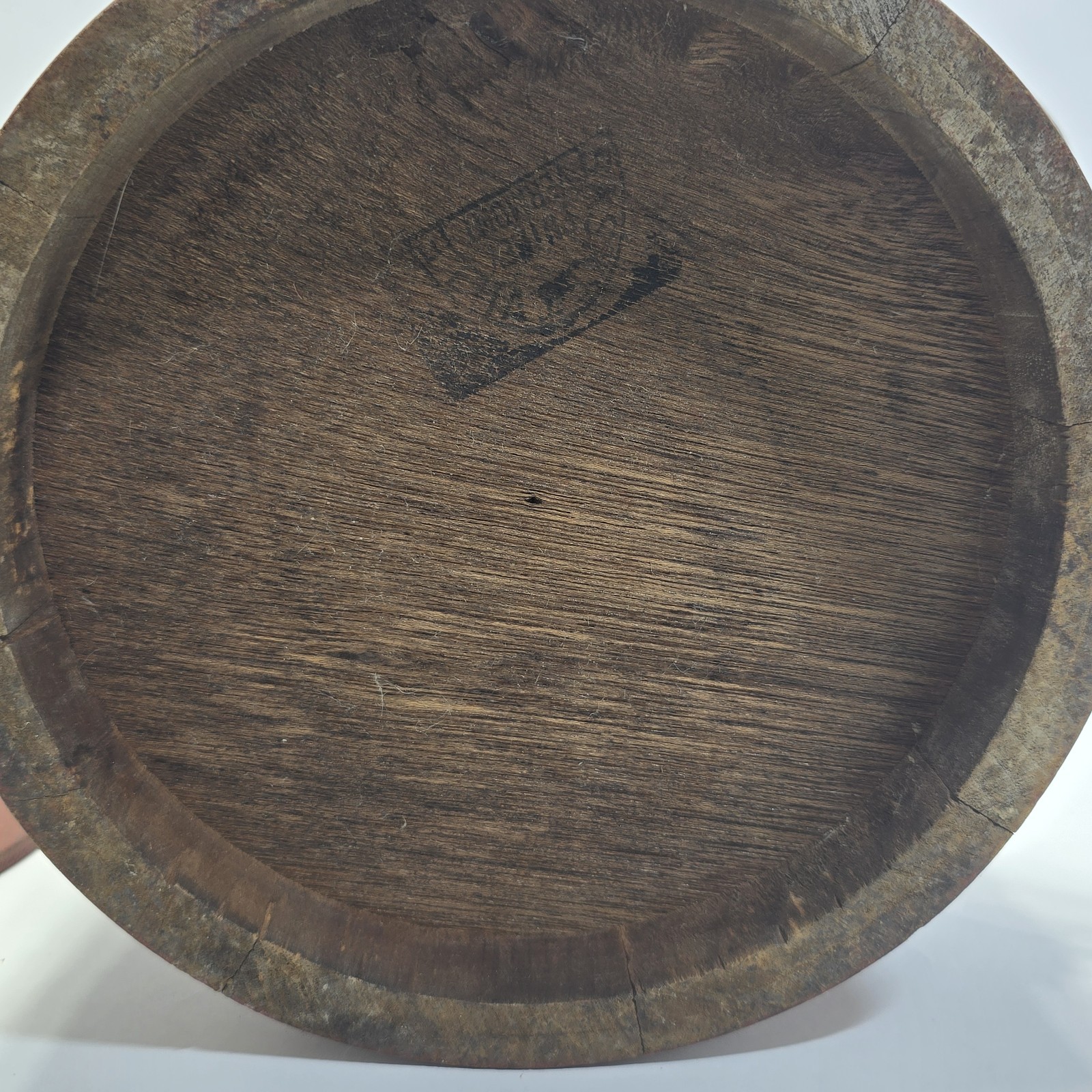 🪵 Beautiful early American-style wooden firkin bucket with original red painted finish and black painted bands — a stunning display piece with authentic vintage charm.