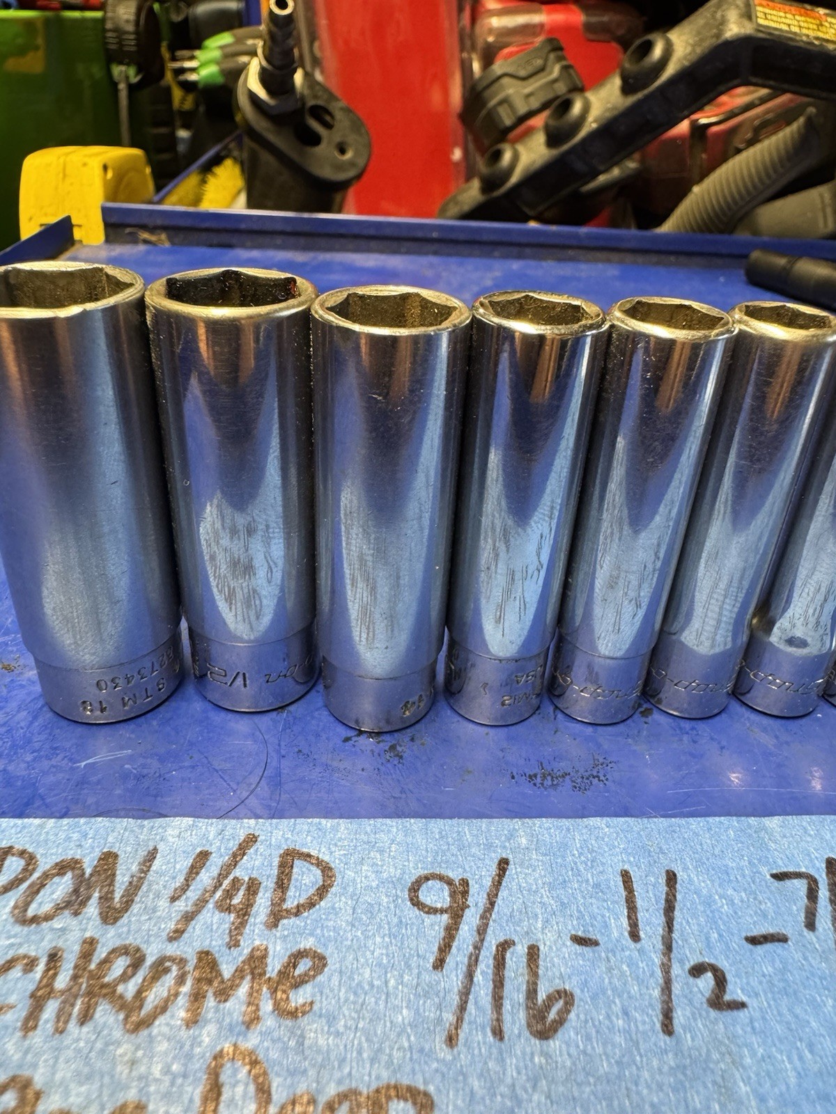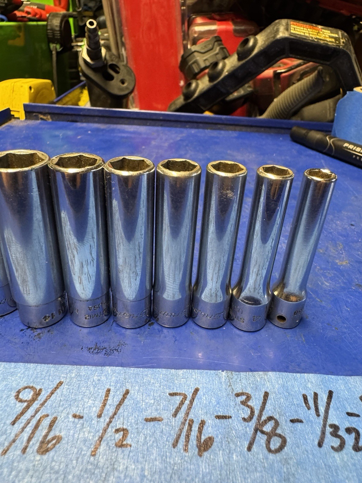 Snap on 9 pc 1/4" Drive 6-Point SAE Drive Deep Socket Set
