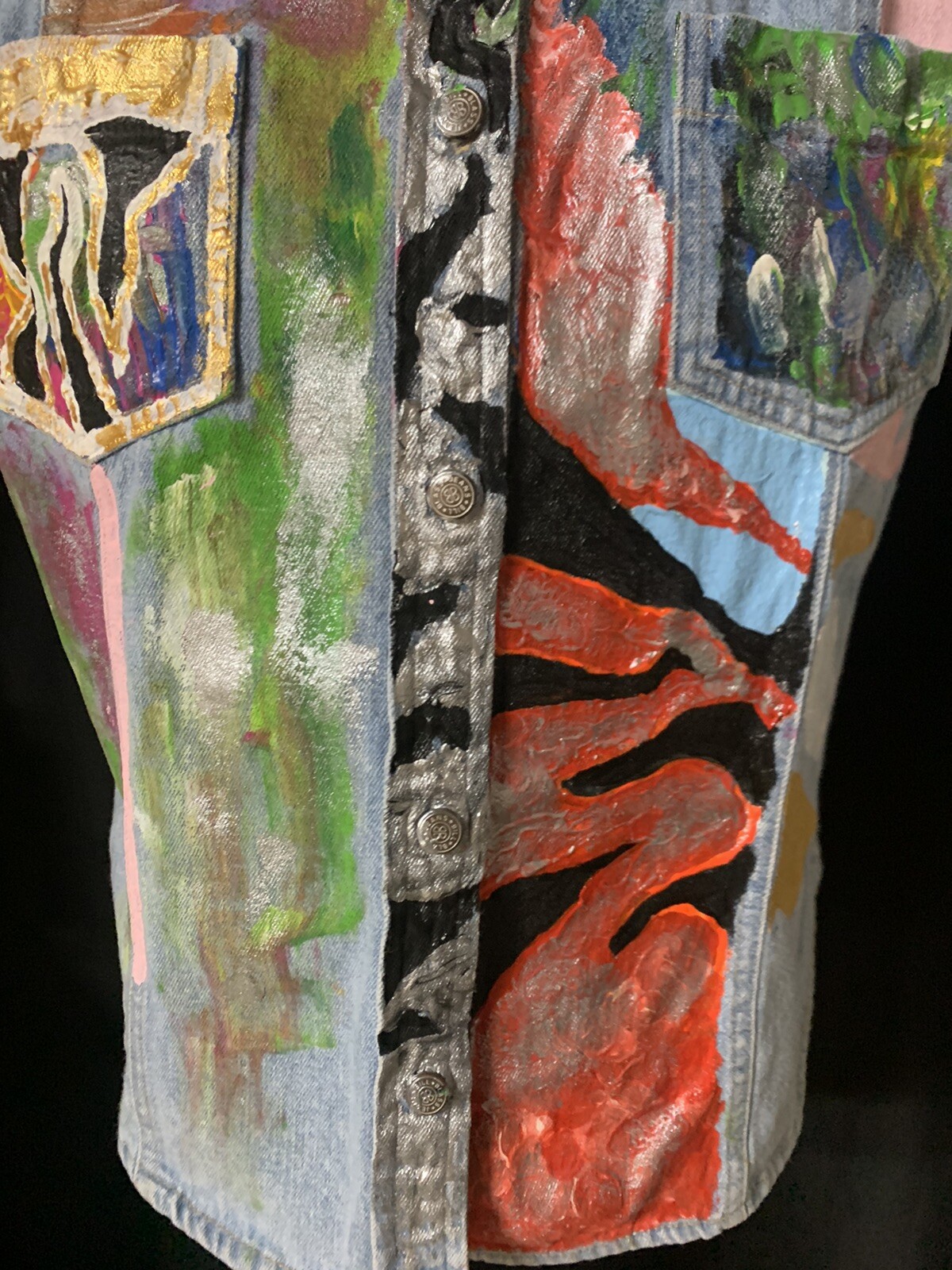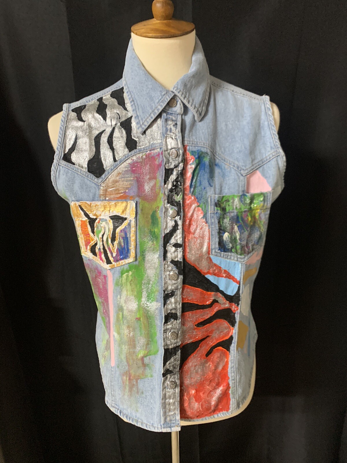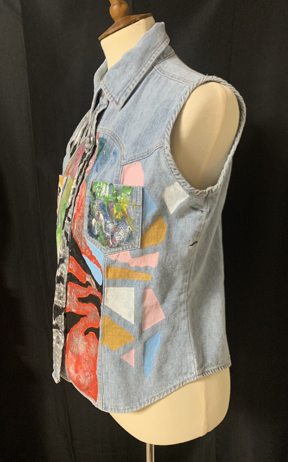 Bliss Blass VTG Painted Upcycled Wearable Art Denim Jean Button Vest Top Medium