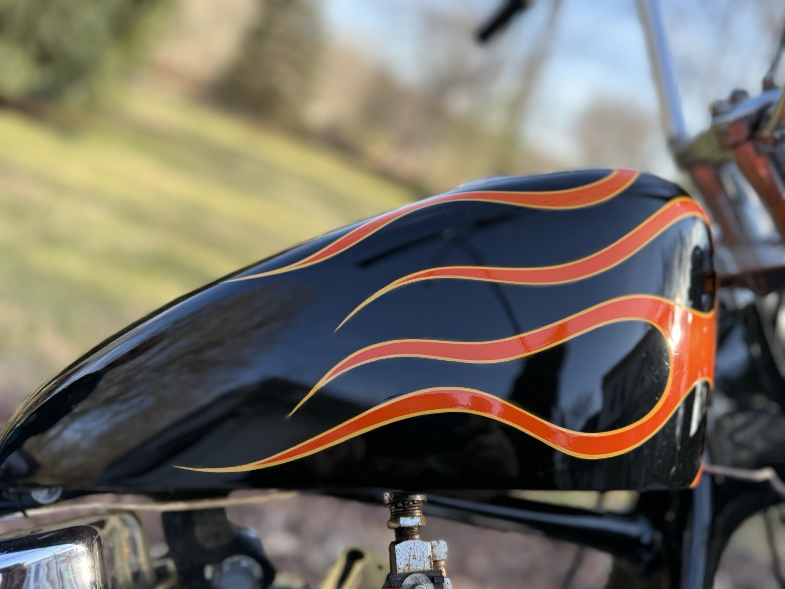 1948 Harley Davidson Panhead FL Period Correct Chopper. This bike is not for the weak. 1948 engine with outside oiler heads. Polished cases. Matching belly numbers. High performance s&s carburetor. 1948 kickstart transmission. ORIGINAL 1948 HD FRAME molded and painted. King sportster tank with flame paint job. Original 1949 risers, trees, and lower legs, and brake drum on the front end. Original 1948 rear wheel. Original mouse trap. Original oil tank. Bike is a period correct chopper with all items of the time where choppers were king. Beautiful antique piece. Was featured in The Horse magazine. Older chrome on the bike. Bike has been sitting for a little while. Not looking to get it running, just looking to sell it. Pay attention to photos for detail. Bike is being sold in as is condition. If you have any questions send a message or text before purchase. Phone is nine one four, four seven one, one six eight three. Message me before purchase!!!!