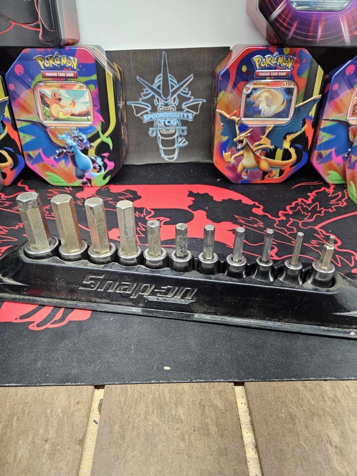 The USED Snap-On 211EFAMY 11pc. Drive Hex Bit Socket Set is a high-quality automotive tool set designed for professionals, 3mm through 14mm. Each socket is made with a chrome surface finish, ensuring durability and long-lasting use. The set features a drive size of 3/8in. and includes 11 different sizes to cover a wide range of automotive applications. Made in the United States, this set is a reliable option for any mechanic or automotive enthusiast. USED BUT IN GREAT SHAPE
