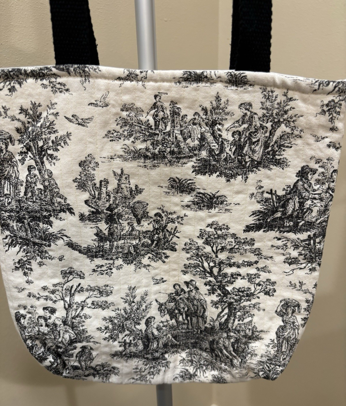 This upcycled handmade small tote bag is made from black and white cotton exterior material with a quilted finish. The bag features black handles/straps, a white lining, and measures 11" in width, height, and depth. With a unique upcycle theme, this tote is both stylish and functional, making it a perfect accessory for any outfit. Handmade with attention to detail, this tote is sure to make a statement with its one-of-a-kind design. its Lovely