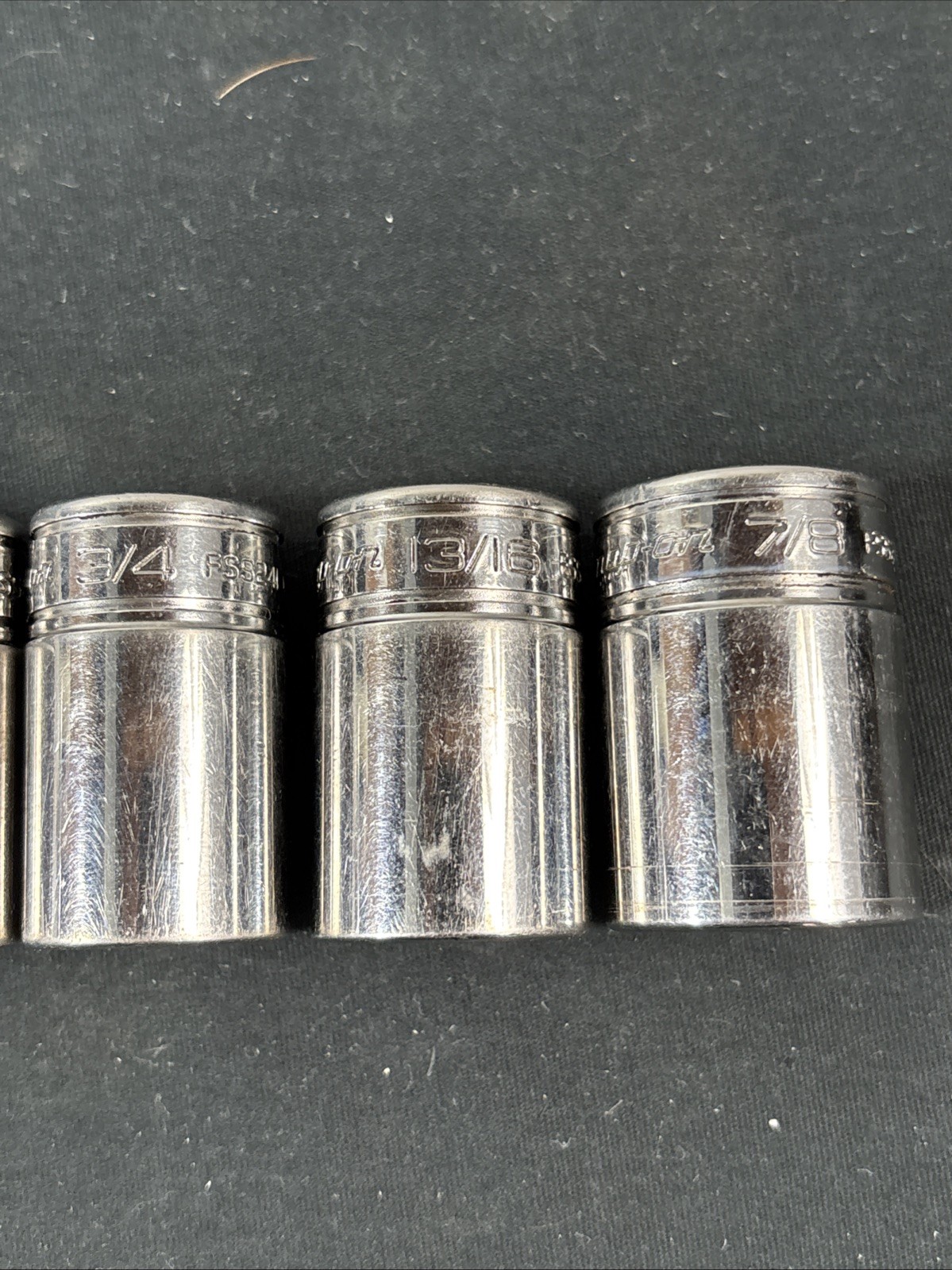 Snap On FSS 6pcs 3/8" Drive Semi Deep Sockets 6PT Socket Set 6pcs. 9/16".-7/8"