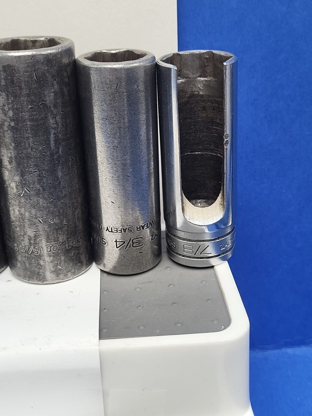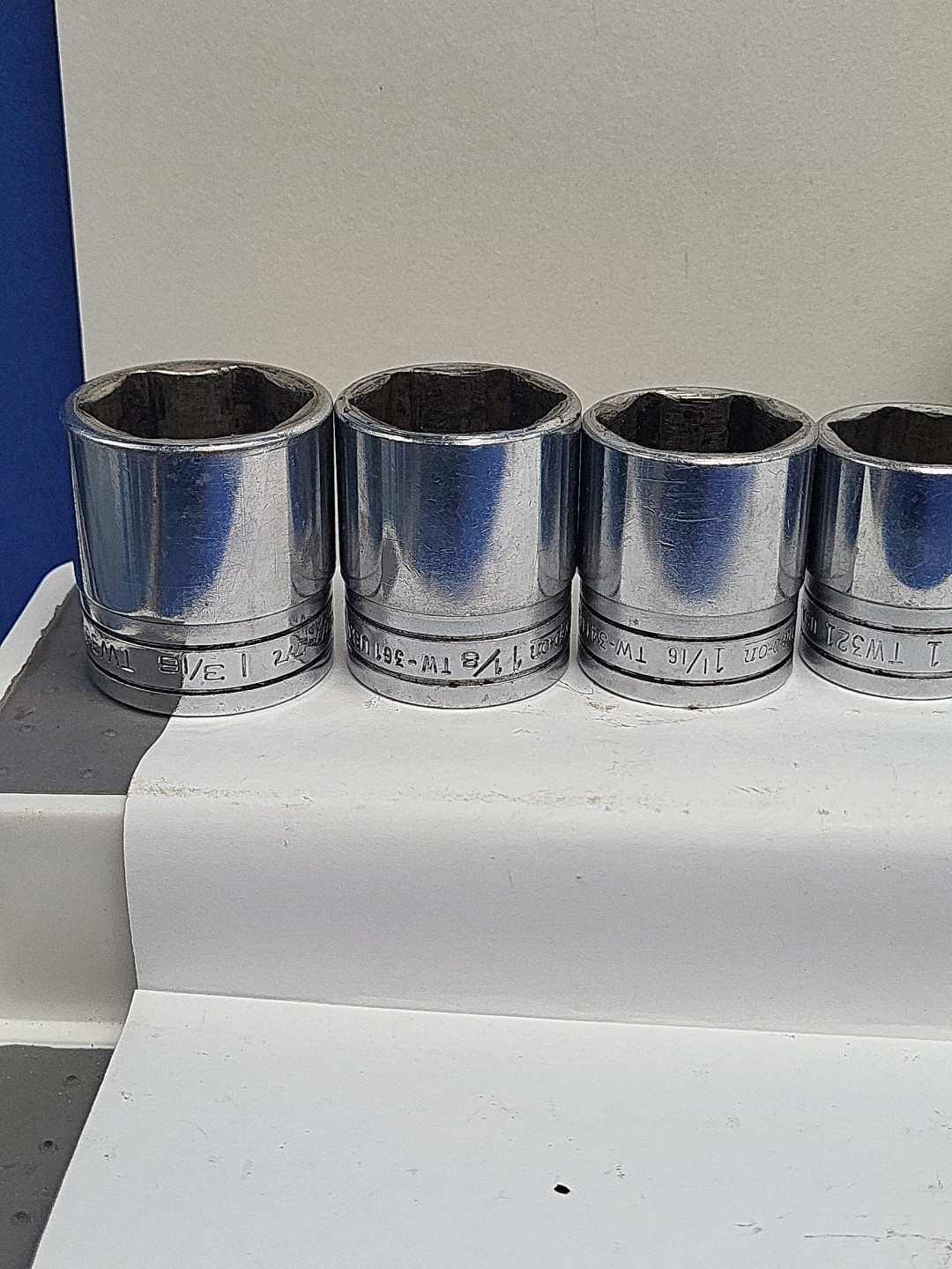 These are Snap-On Tools. The brand name speaks for itself in terms of quality and durability. TW 1 3/16 1 1/8 1 1/16 1 " 6 point. 1 3/16, deep 15/16 short 12 point. IM 7/8 impact. SIM deep impact 1" 15/16 and 3/4. And S9842a 7/8 specialist socket. 11 soc kets. All have use and wear. Some have wear from air guns and extensions. All are used. Some sockets have initials on them. See pictures. All have wear from use. All used and sold As-is.