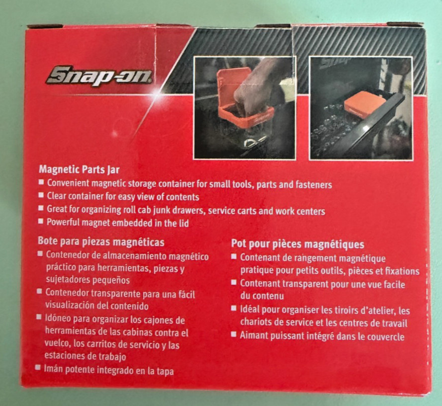 Brand new, in box, direct from Snap-on. Only opened them to make sure they're good. Strong magnet is on the rear, so you can have these on a box or other ferrous surface. The lid opens with a switch and can be opened while mounted magnetically. I have Red, Green, and Orange at the moment. Black coming soon.