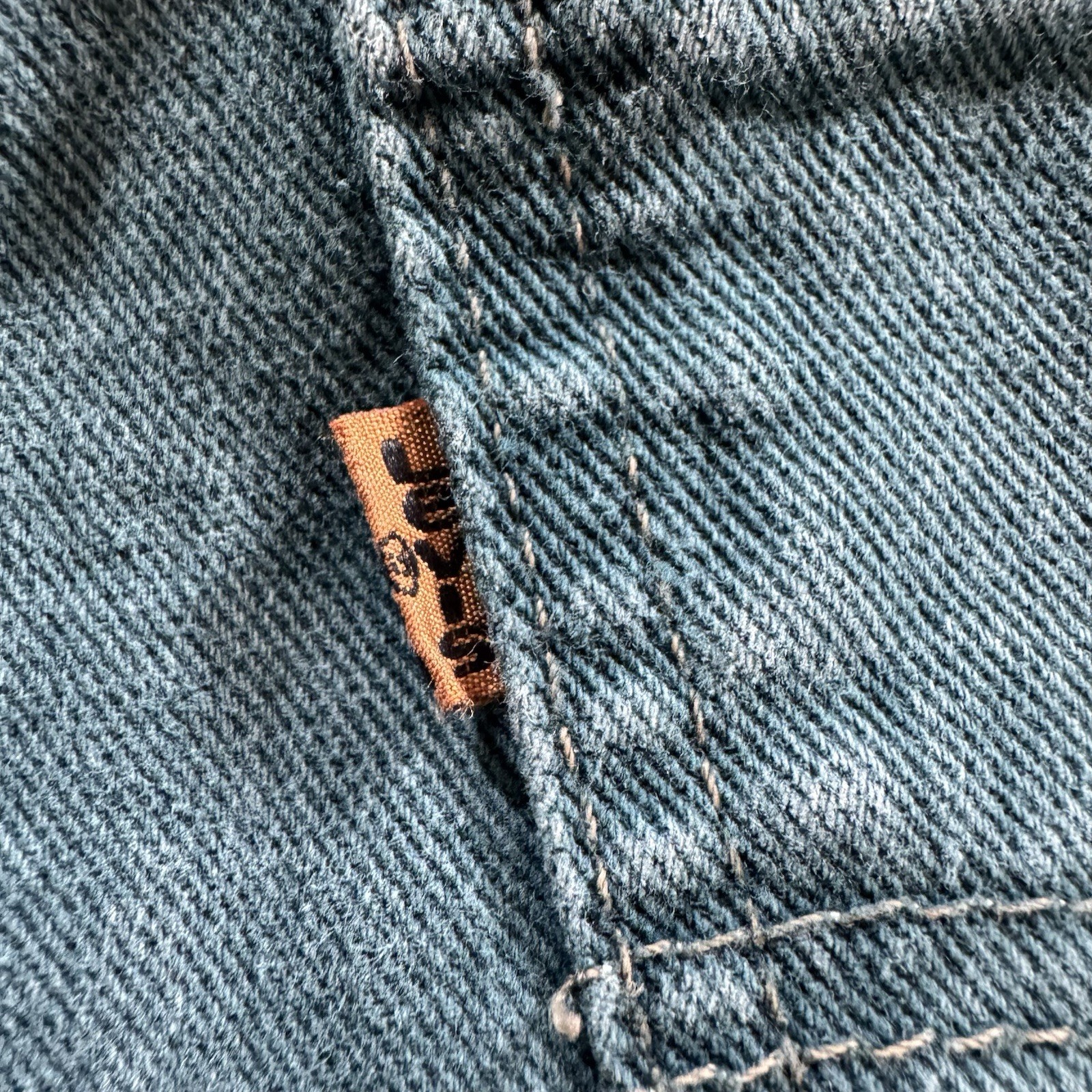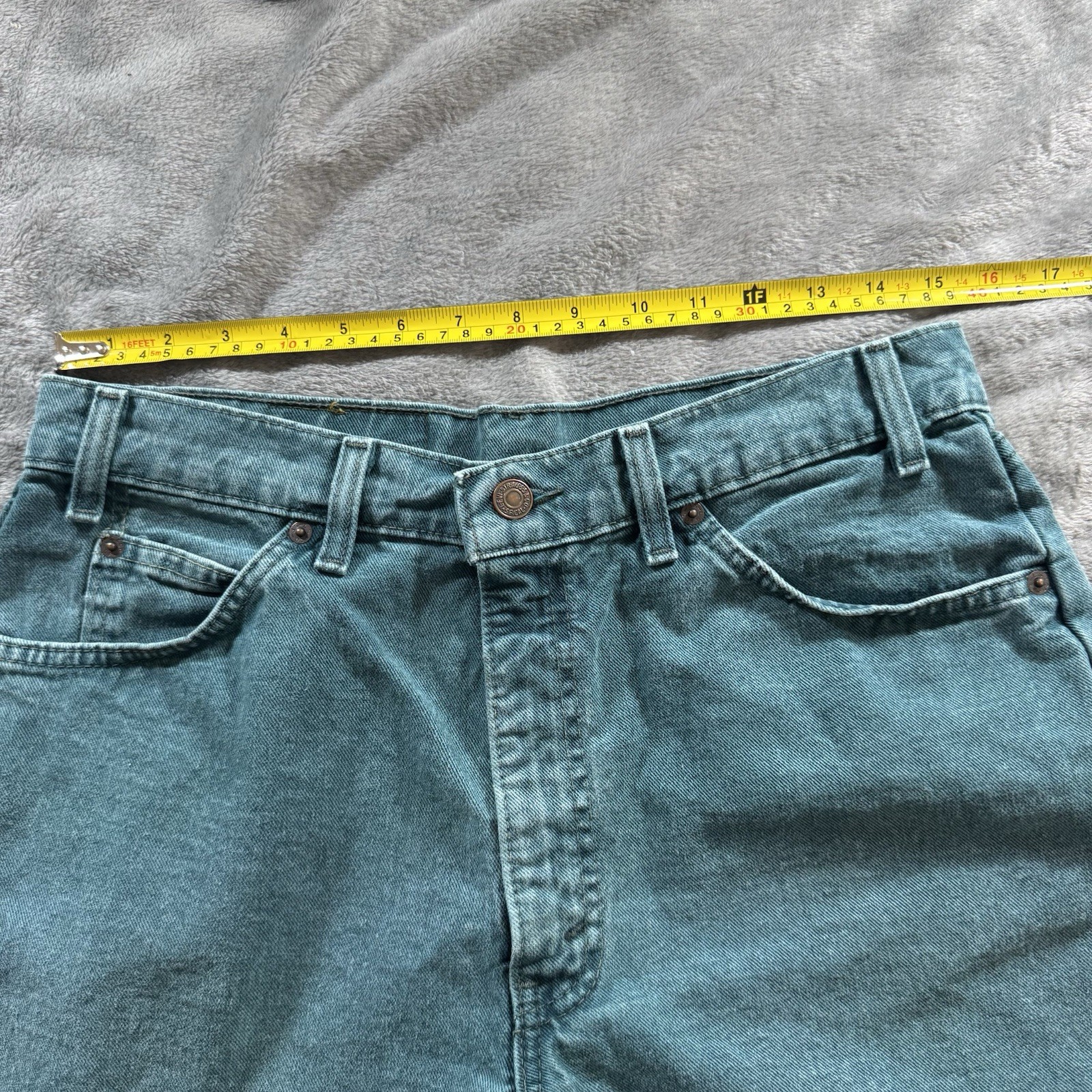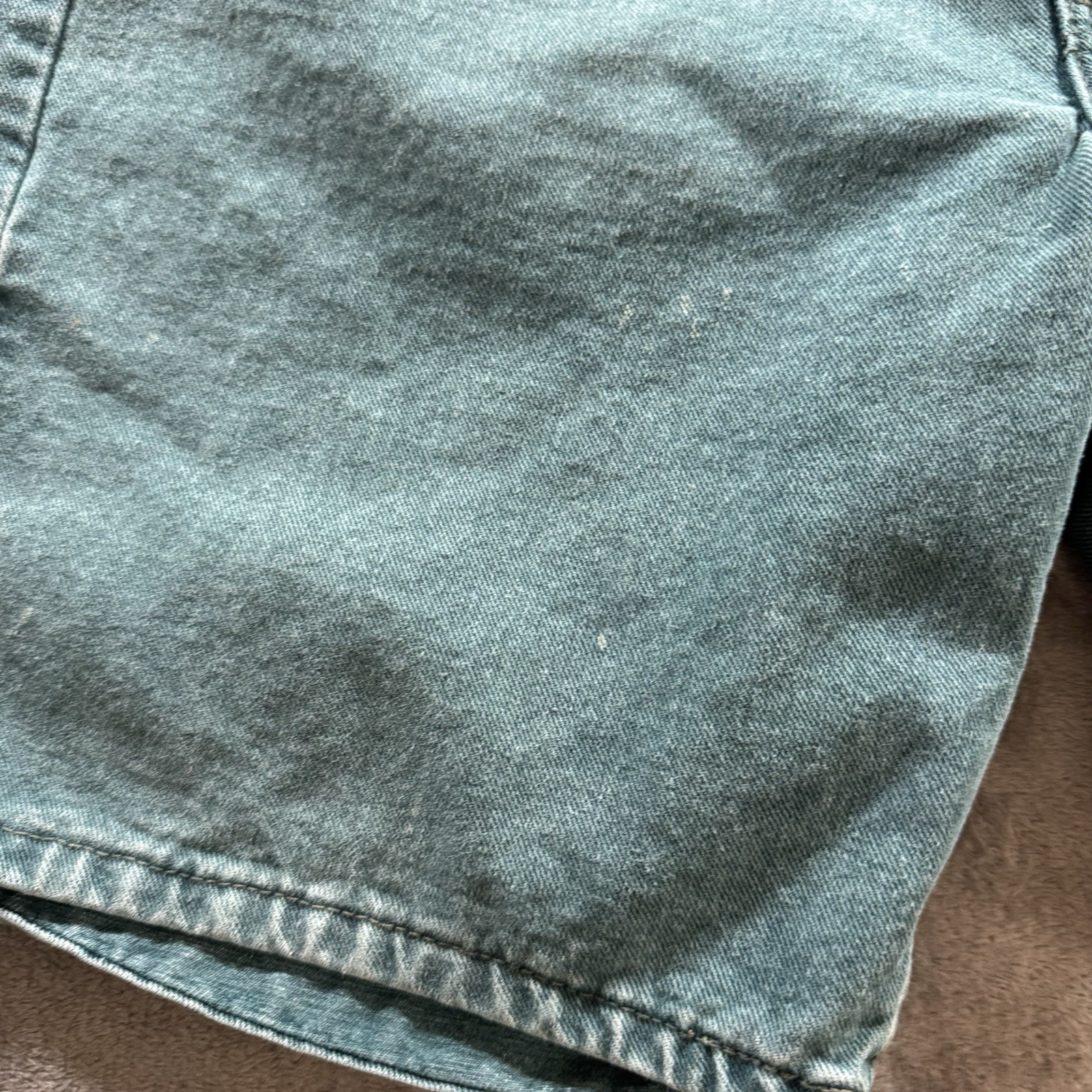 Really cool color with a sick fade. Tagged at 34 but true waist size is 30. Has some very very faint staining on the front legs as pictured