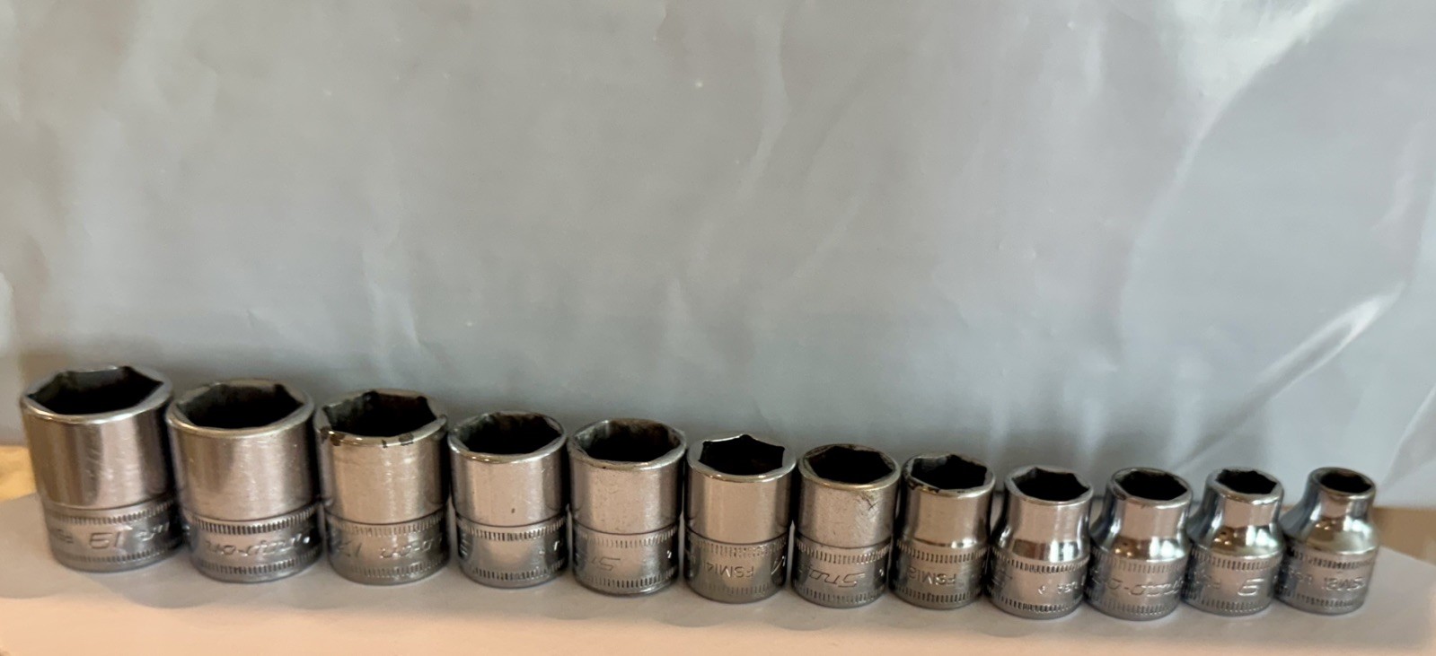 Snap On USA FSM 12 Piece 3/8" Drive 6pt Point Metric Shallow Socket Set 8-19mm