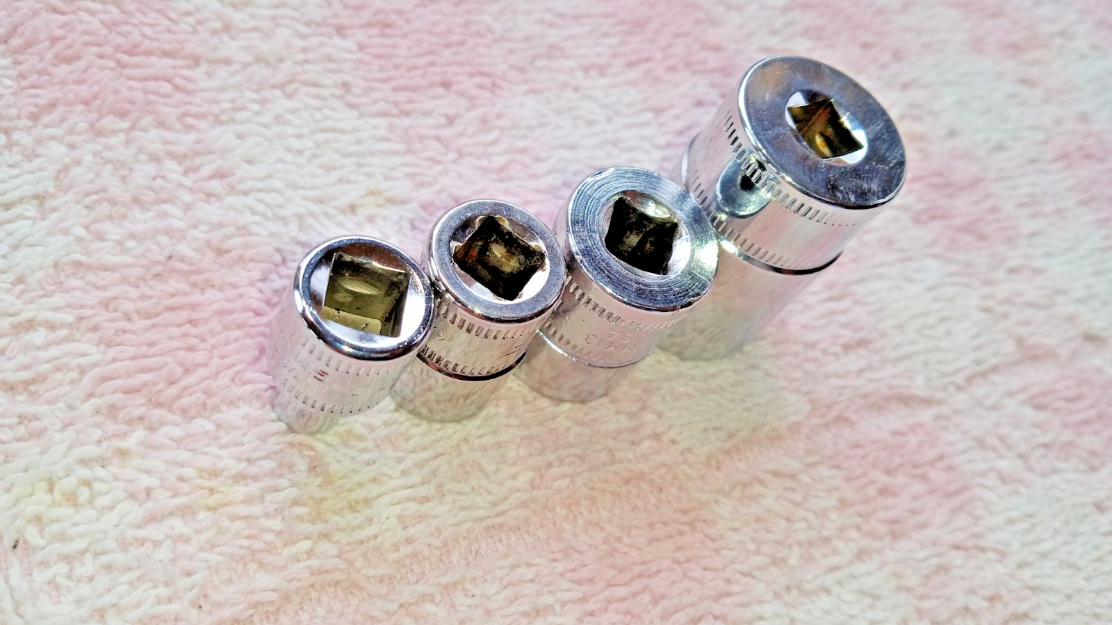 These 4 Snap-on sockets are extras from my personal collection. I have used them minimally and with great respect. 4.5 mm has not been used and is new. 10, 13 and 15 mm are clean and have no damage, scratches or markings of any kind. The wear is light, 10 and 13 mm sockets have seen the most action. 15 mm is fairly close to 'like new'. All are 1/4 drive and 6 point.
