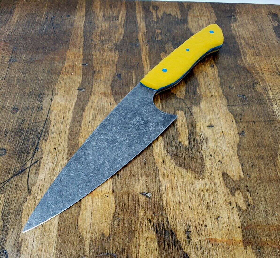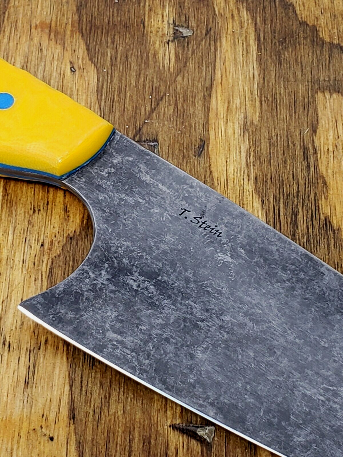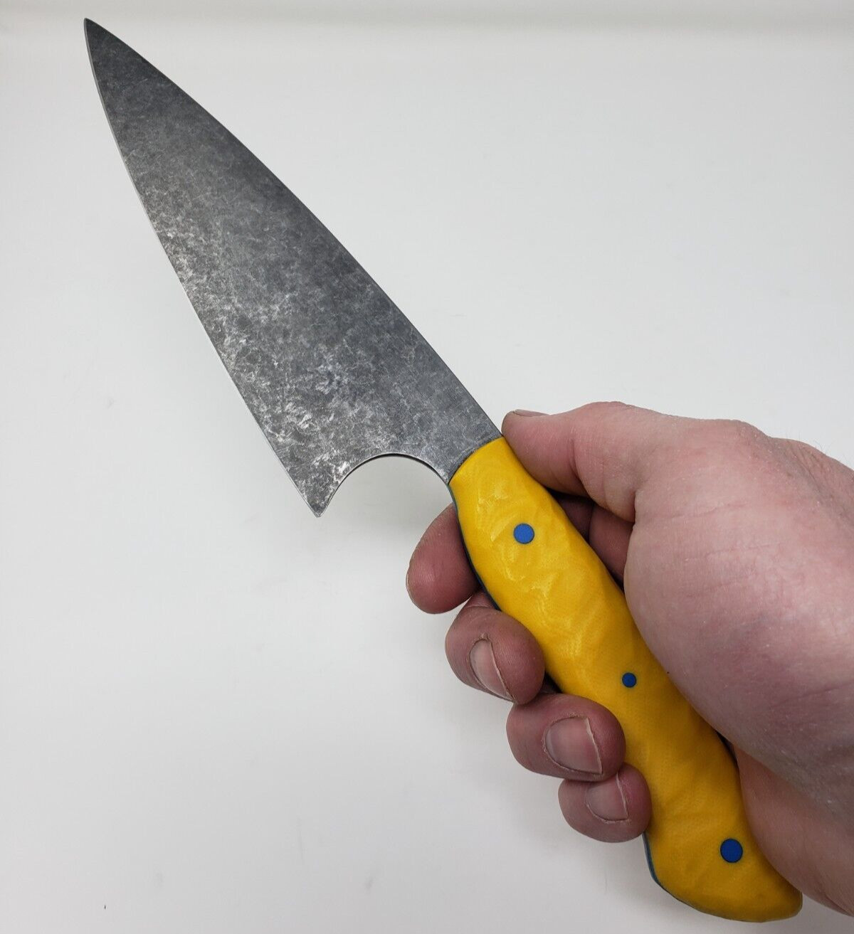 Handle: Yellow G-10 with blue G-10 liners