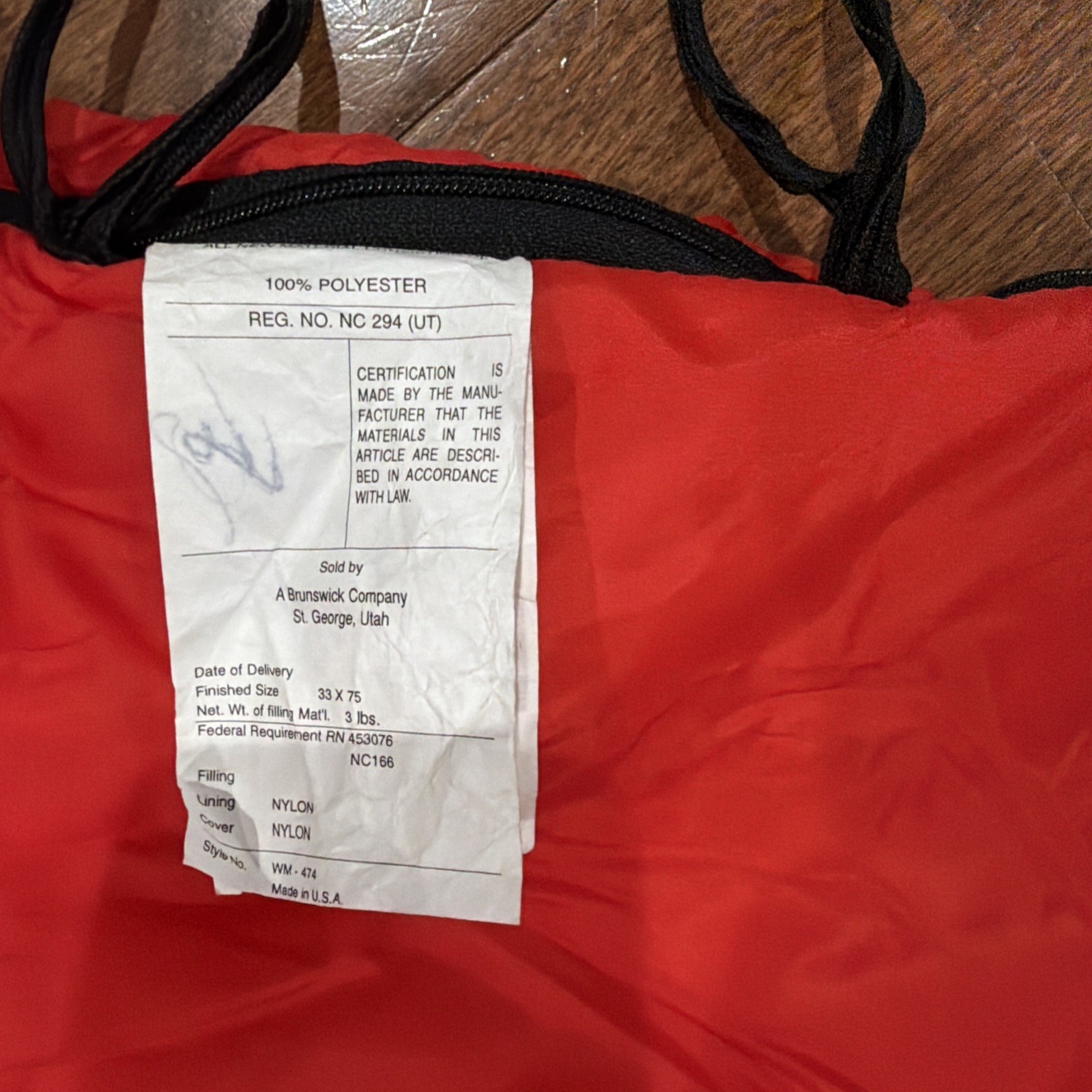 Sleeping Bag Red Yellow Nylon Polyester Made in USA 33 x 75