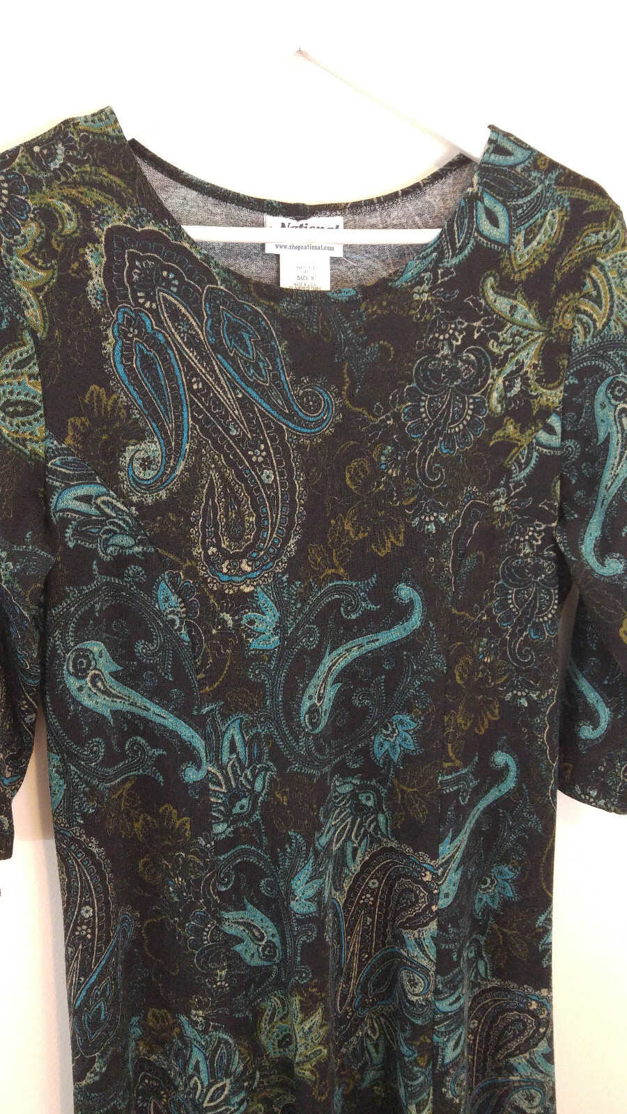 National Dress Knit Stretch Made in U.S.A. Long Twirly Paisley Print Size Small