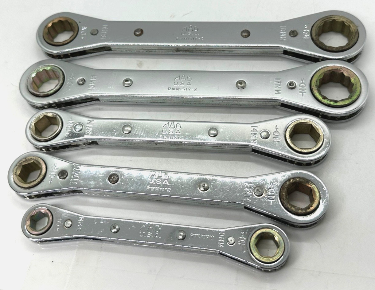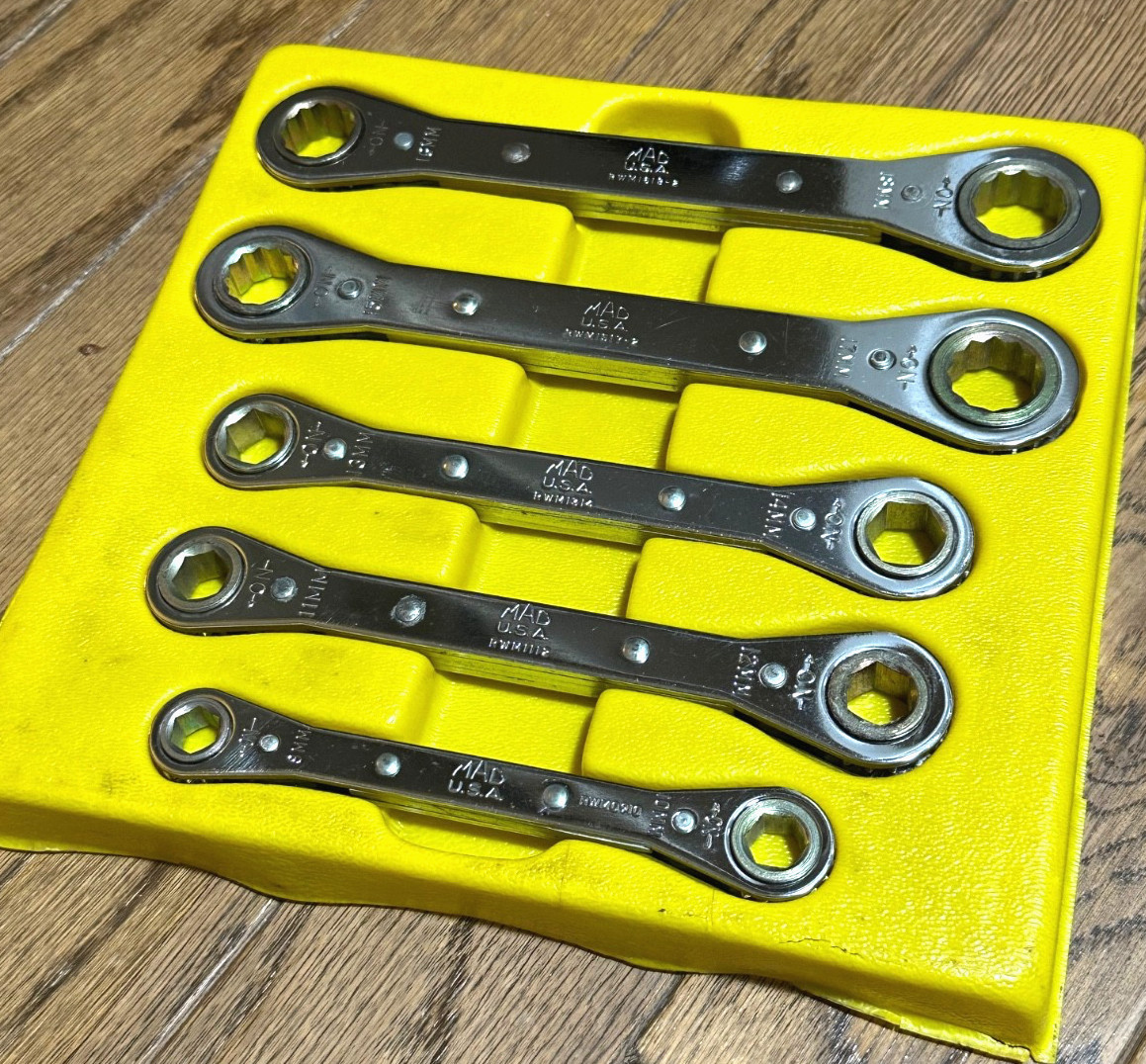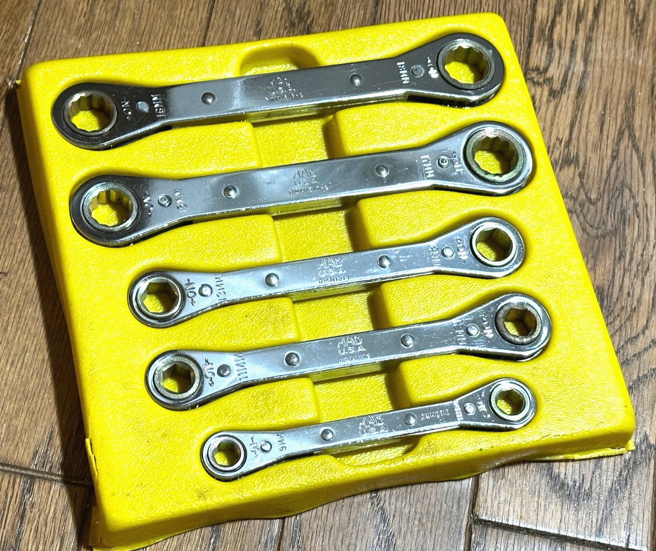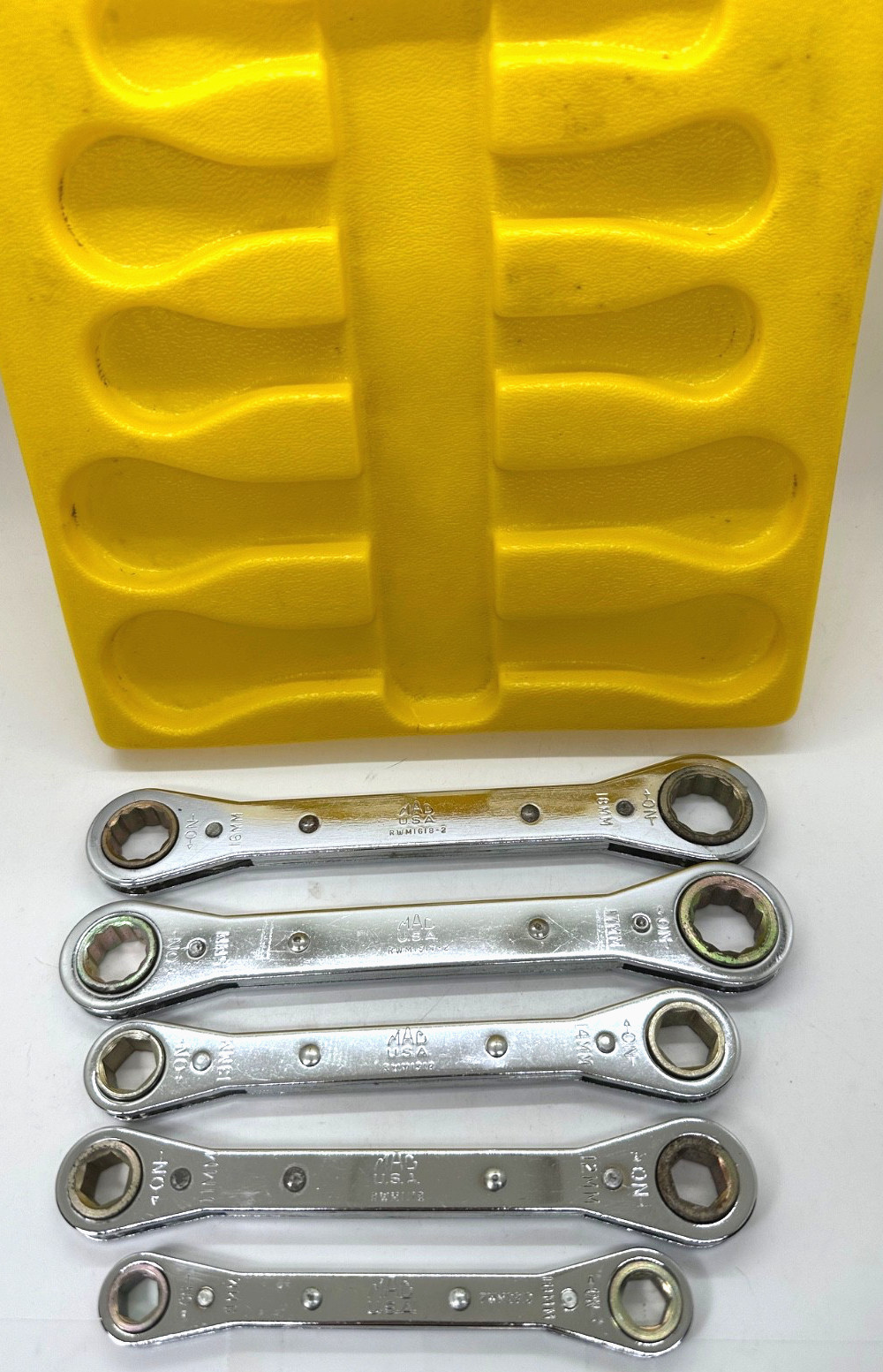 🇺🇸 MAC Tools Double Ratcheting Box End Wrench Set Lot Yellow Tray Ratchet USA