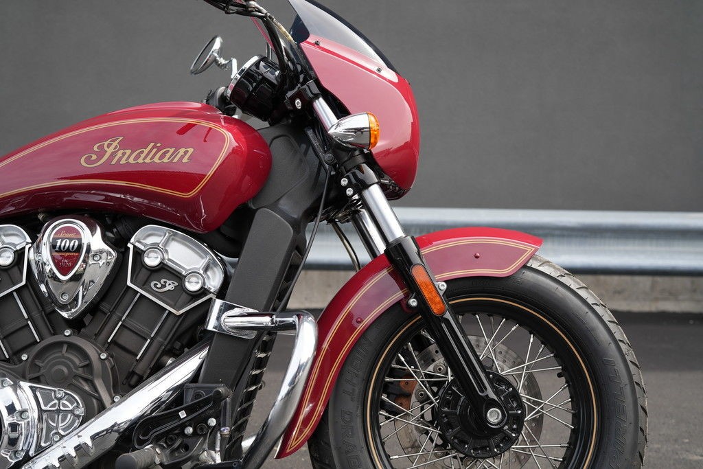 2020 Indian Motorcycle Scout 100th Anniversary Indian Red with Gold trim for