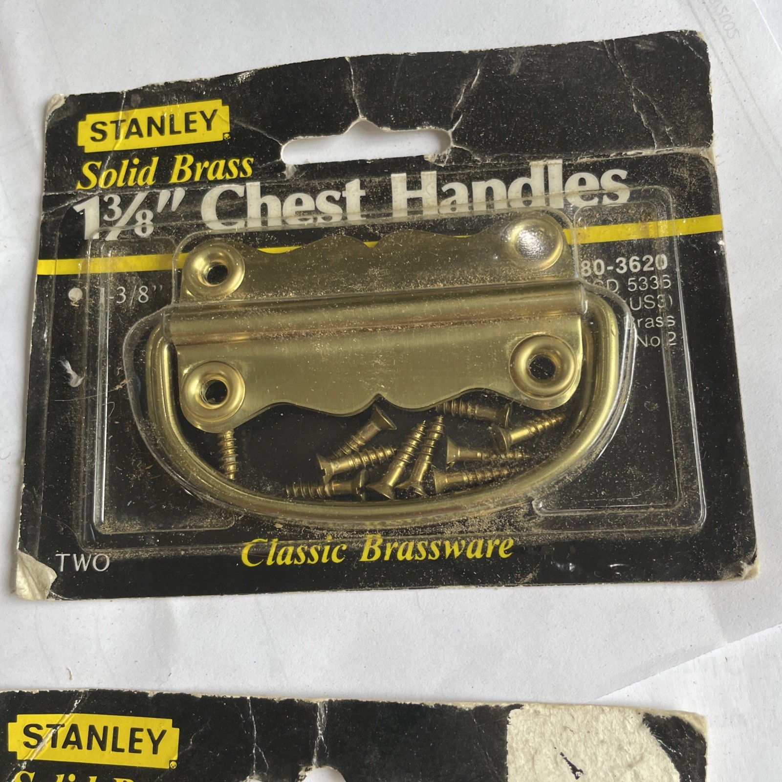 Stanley Solid Brass Chest Handles NIP 80-3620 2 Set of 2- 1 3/8 ht. Made In USA