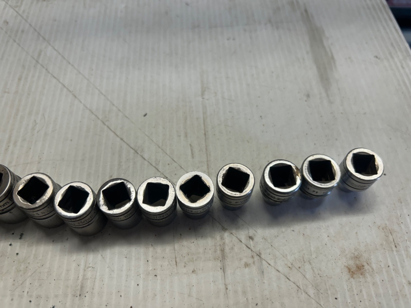 Nice condition set of vintage Snap on sockets. These are the underlined series. A couple of the small sockets are a bit hard to read. Ask any questions MP