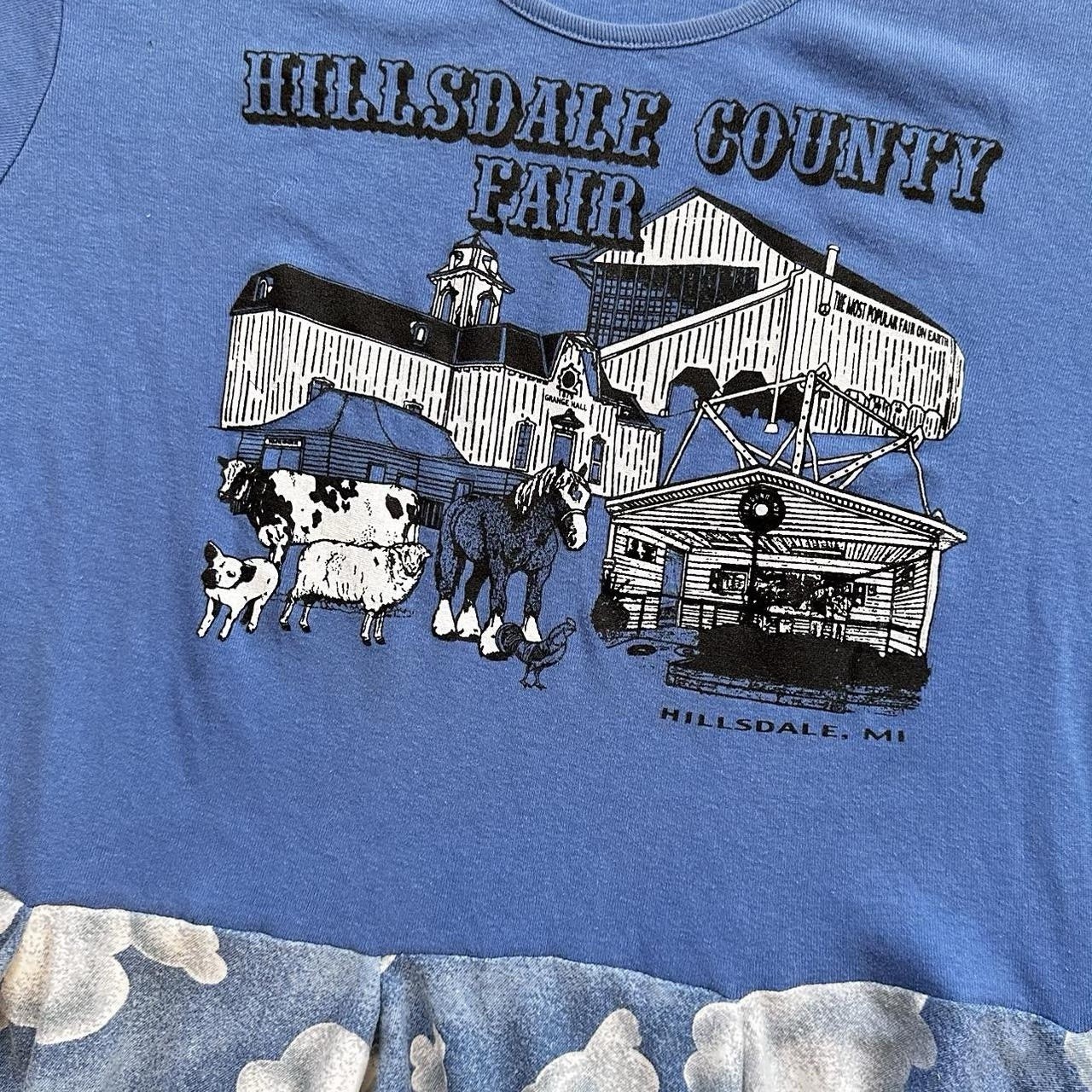 Upcycled Reworked Cloud Farm Fair Tee Handkerchief Mini Tshirt Dress Women L XL