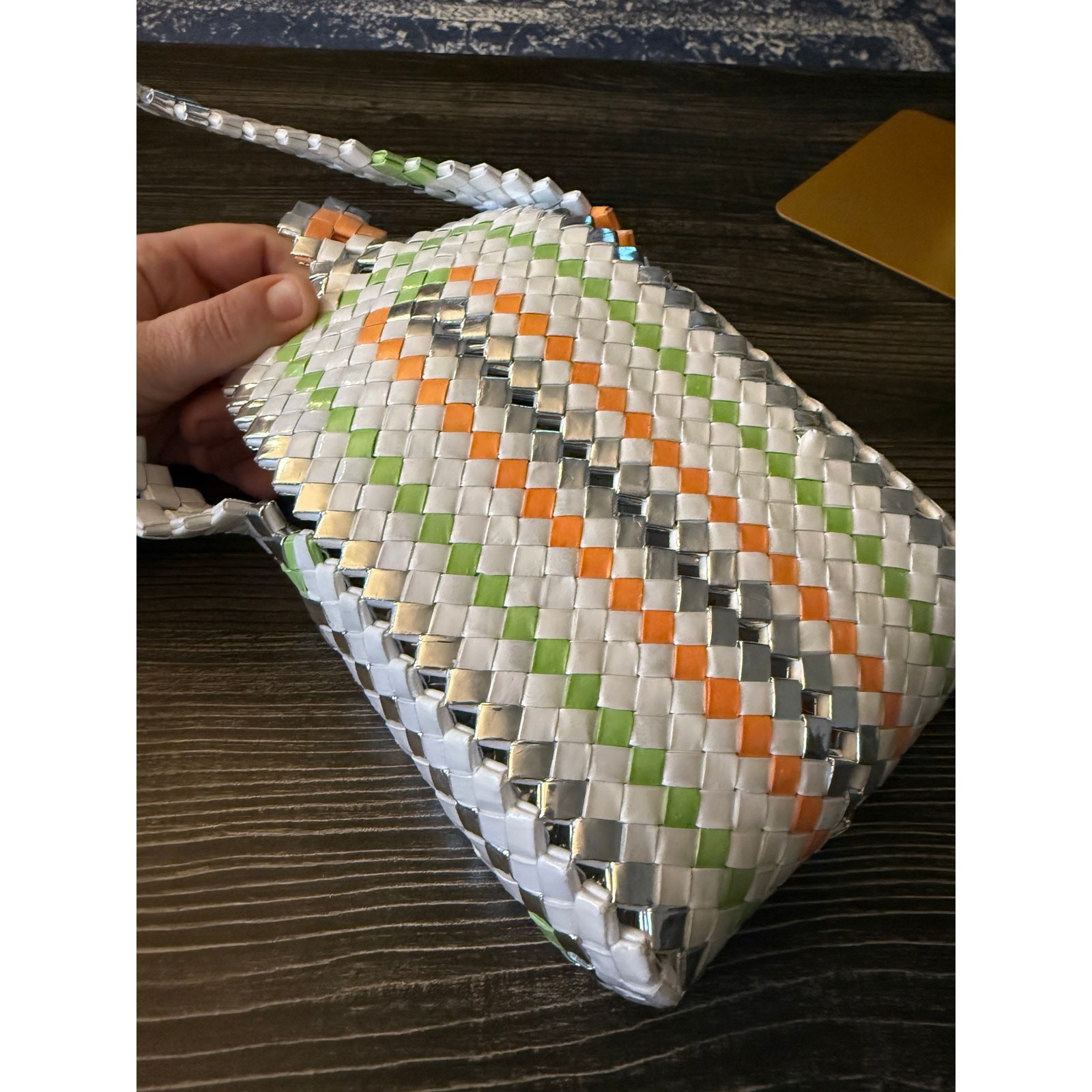 Cute purse woven so that there are a few holes to give dimension. Let me know if you have any questions or concerns.
