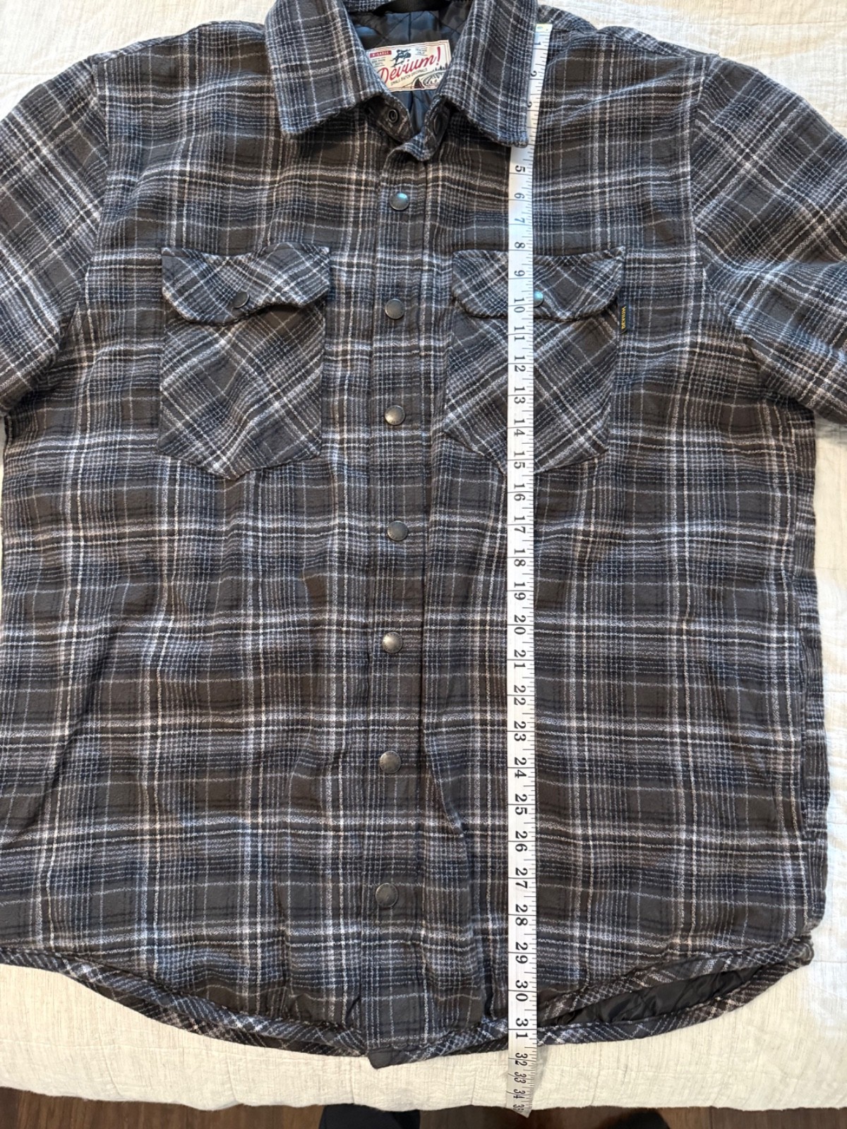 Like-new, excellent condition. Devium men's XL (x-large) Stampede Quilt Lined Flannel Jacket. Made in USA. Gray, brown, and black plaid. No signs of wear but ***DOES HAVE ALTERED (HEMMED SLEEVES - ADJUSTED SLIGHTLY FOR SHORTER LENGTH). Please be sure to view measurements shown in photos.*** Original price: $248 Description from Devium site: Built from the same mindset that drives our best-selling flannels, the Stampede Quilt Lined Flannel Jacket is a cold-weather workhorse 100% American Made in small batches. Never rushed, never outsourced, it carries that unmistakable American-made substance the moment you shrug into it. We wrapped the exterior in our fan-favorite 7oz Boca double-brushed Flannel for that classic look and feel, and paired it with a tough midweight quilted nylon liner that slides comfortably over whatever you’re wearing—no Michelin-Man puff, no friction, no fuss. Hidden side-seam hand pockets keep your hands warm when the temperature drops and your gloves are… somewhere else. Inside, a stash pocket holds your phone close and secure. And every detail—from the clean interior finishing to our custom debossed 21L military-grade antique brass snaps—echoes the kind of American workwear built to take a beating and come back for more. The fit is dialed with a touch of room so you can layer when the cold really sets in. Stick with your usual tee-shirt size for layering, or size down if you plan to keep it minimal underneath. Materials: 7oz Yarn Dyed 100% Organic Cotton Flannel Nylon double-quilted lining Provenance: 100% AMERICAN MADE Designed