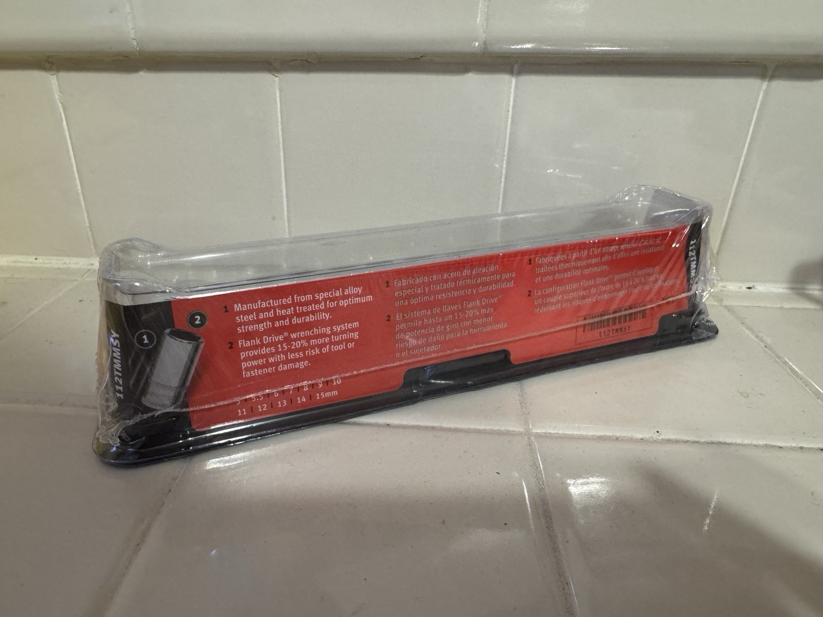 New Snap-on™ 1/4" drive 5 thru 15 mm 6-point Semideep Socket Set 112TMMSY