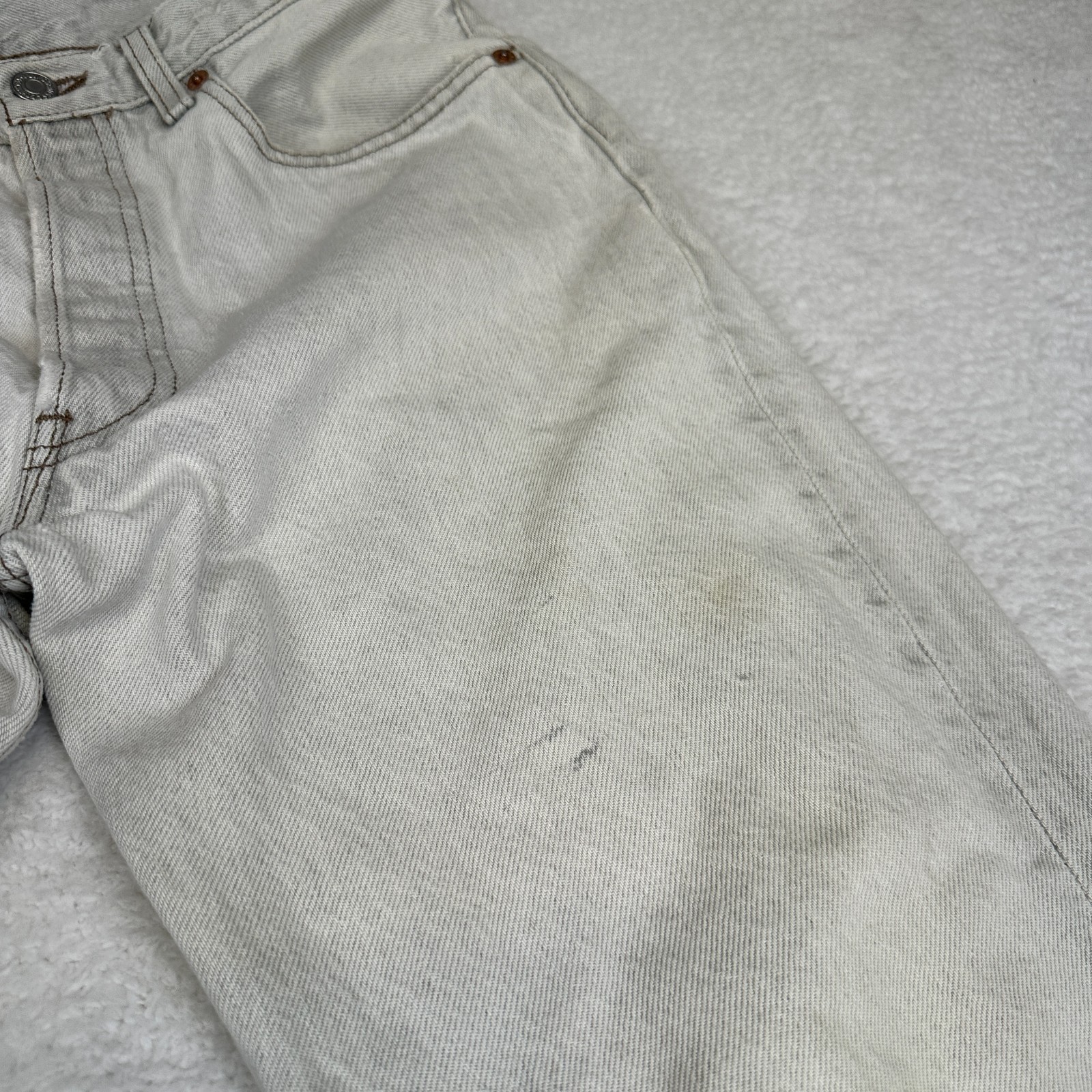Levi's 501 Made in USA Distressed Grey Wash Jeans W32 L34 Altered Raw Hem