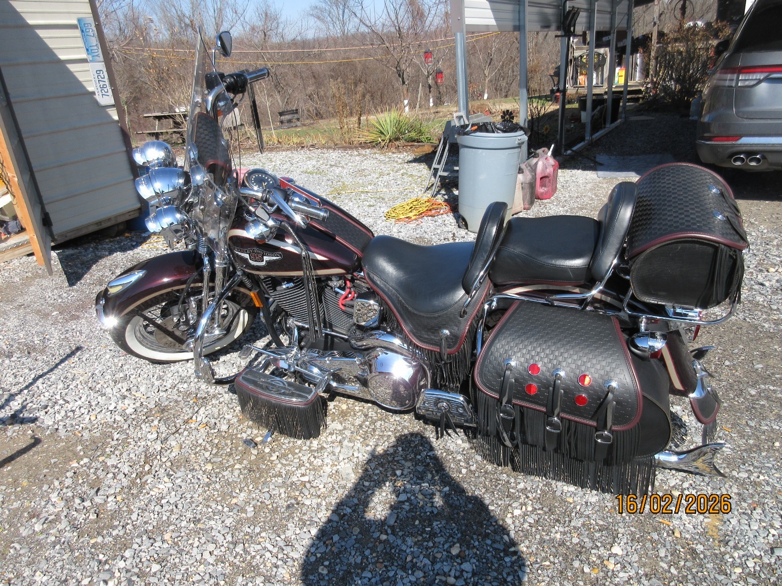UP FOR OFFER IS A 1998 HARLEY DAVIDSON 95th ANNIVERSARY HERITAGE SOFTAIL SPRINGER . THIS BIKE IS NUMBERED 759 OF 3000 PRODUCED. THIS IS ONE OF HARLEY DAVIDSONS RAREST PRODUCTION BIKES. IT IS LOADED WITH THE CORRECT EXTRAS OFFERED BACK IN 1998 FOR THIS BIKE. IT EVEN HAS THE RARE CHROME TOOL BOX AND SADDLEBAG GUARDS. ALL THE LEATHER IS NICE AND HAS THE BURGANDY TRIM THAT WAS ONLY OFFERED ON THE 95th ANNIVERSARY AND HAS ALL LEATHER ACCESSORYS OFFERED AT THE TIME AS FAR AS I KNOW . THE PAINT IS NICE WITH NO MAJOR SCRATCHS OR DENTS. NEVER BEEN LAYED OVER OR WRECKED. THE CHROME IS NICE AS SEEN IN PICKS, THIS BIKE HAS BEEN WELL SERVICED AND GARAGE KEPT AND RUNS LIKE A DREAM . IT IS THE LAST YEAR EVOLOUTION - EVO ENGINE WHICH IS KNOWN TO BE VERY DEPENDABLE. AND THAT EVO SOUND IS AWSOME. THE TIRES ARE LOW MILAGE WITH LITTLE WEAR . IT DOES HAVE 30172 MILES ON IT. WE RODE IT ON WEEKENDS . YOU CAN GET ON HER AND RIDE ANYWERE ITS READY TO GO AND DEPENDABLE. ITS NOT BEEN SETTING AROUND FOR YEARS ITS BEEN KEPT ROAD READY. NO MECHANICAL ISSUES OR PROBLEMS. NO OIL LEAKS . LOOK OVER THE PICKS YOU WILL NOT FIND ONE WITH ALL THESE FACTORY CORRECT EXTRAS. EVERYTHING IS ORIGINAL EXCEPT FOR THE EXHAUST WITH I PUT SAMSON FISHTAILS ON HER BUT I STILL HAVE THE ORIGINAL EXHAUST THAT GOES WITH IT IF YOU WANT THOSE ON THERE. OVERALL AS NICE AS YOU WILL FIND ONE AND GETTING RARER EVERY DAY. HD ONLY MADE 3000 OF THESE AND TO FIND ONE THATS NOT BEEN STRIPPTED DOUN WITH ALL THESE ORIGINAL EXTRAS IS RARE BY ITSELF. ( A $500 DOLLAR DEPOSIT THRU PAYPAL IS REQUIRED ON DAY OF PURCHASE AND PAYMENT IS DUE IN FULL WITHIN 7 DAYS OF PURCHASE. FULL PAYMENT MUST BE MADE BANK TRANSFUR IF YOU NOTFY ME AHEAD OF TIME OR CASH WHEN PICKED UP. BUYER PICKS UP HERE AND IS RESPONCIBLE FOR SHIPPING. ALL SERIOUS OFFERS CONSIDERED . ANY QUESTIONS JUST ASK.