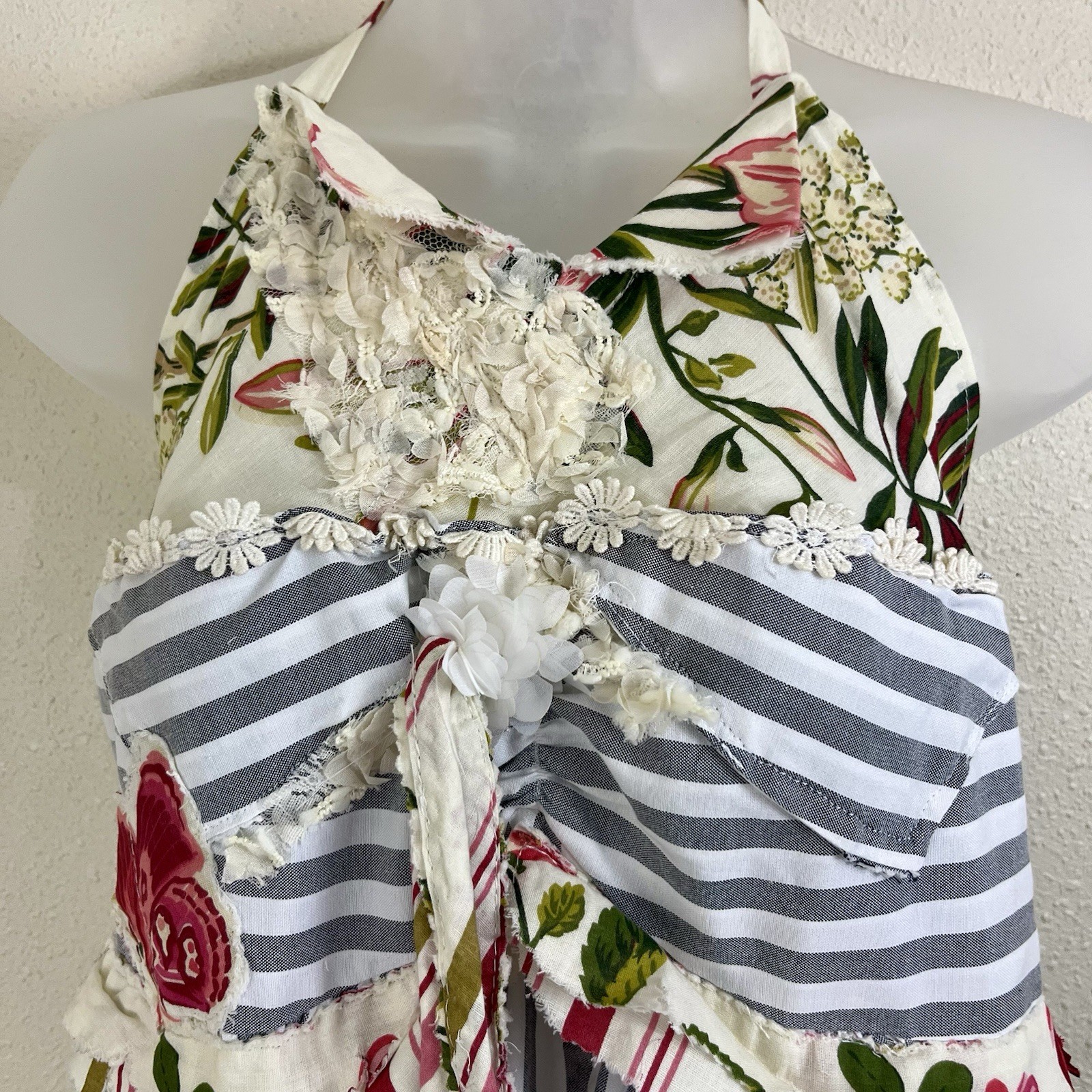 Handmade Upcycled Halter Dress Mixed Print Boho Hippie