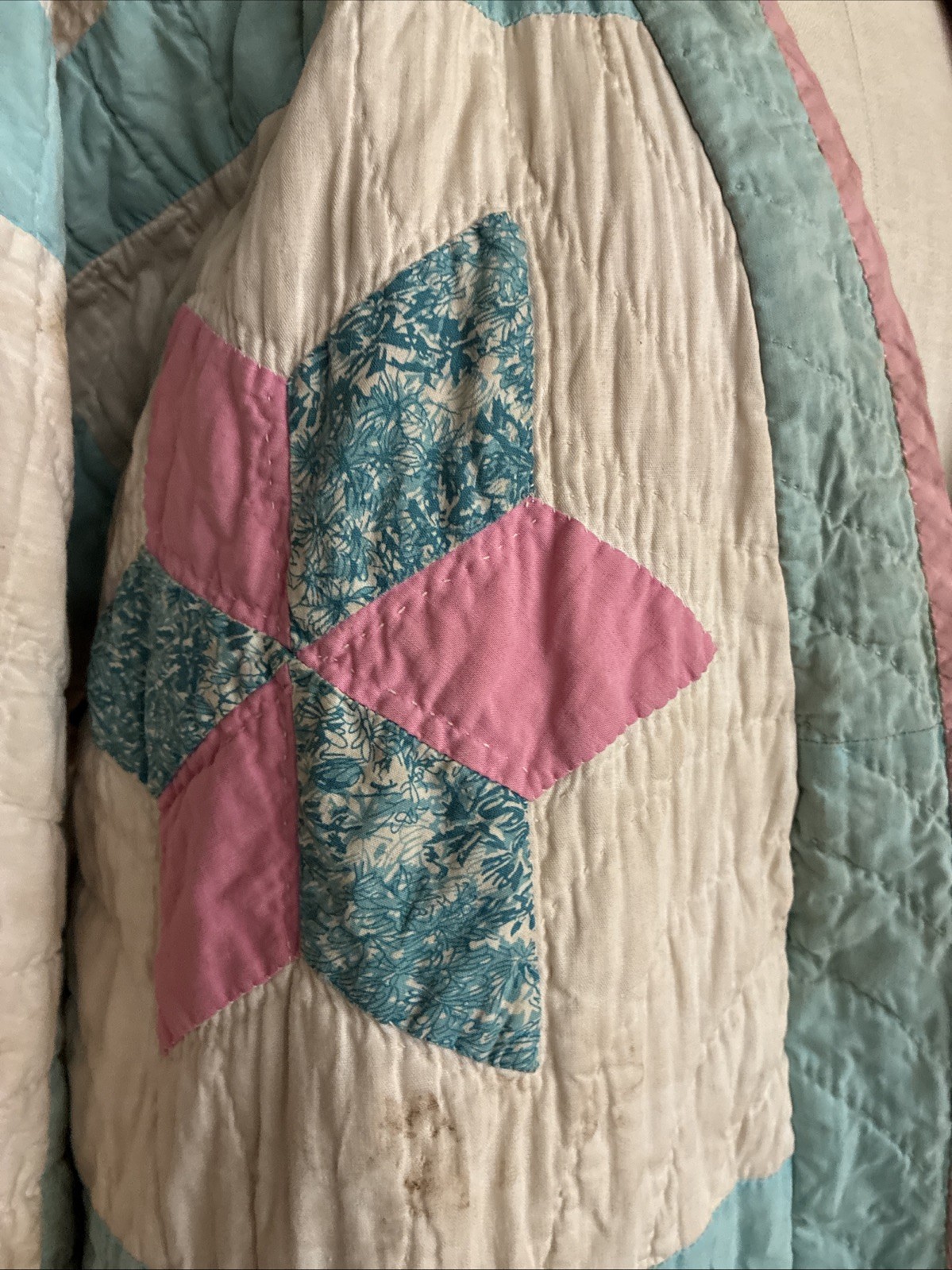 Handmade Upcycled Quilt Jacket Coat Oversized Blue Pink Patchwork Star