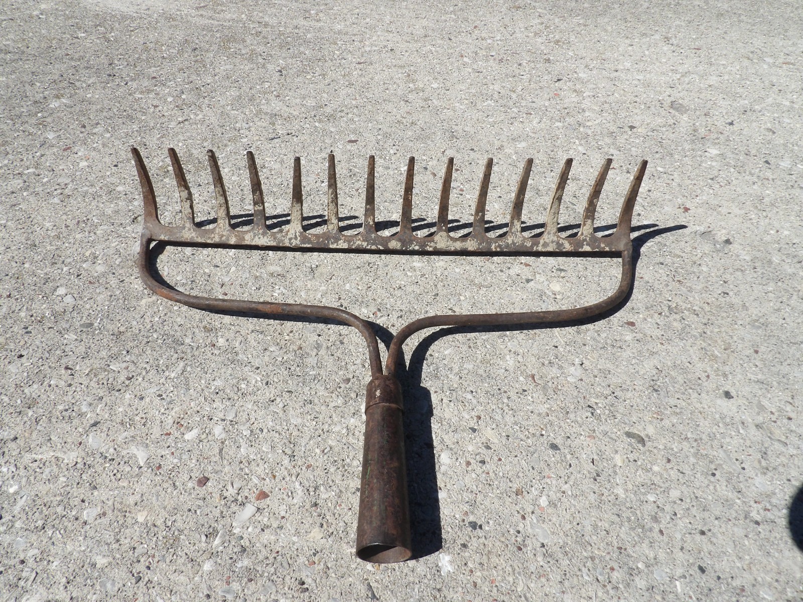 VTG 14 Tine Iron Rake Head / Garden Tool - Primitive Rustic Country MADE IN USA
