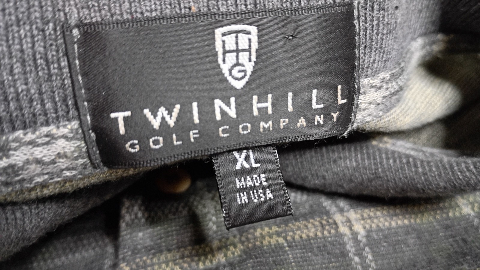 Twinhill Golf Polo Shirt Mens XL Green Gray Plaid 100% Cotton Made in USA 26x32