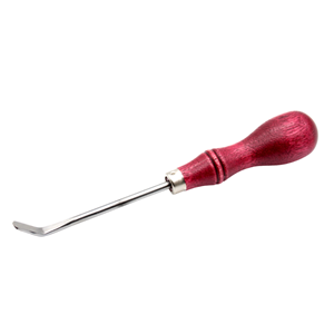 Stainless steel bent blade. Round polished hardwood handle. Ideal for working in water. Made in USA.