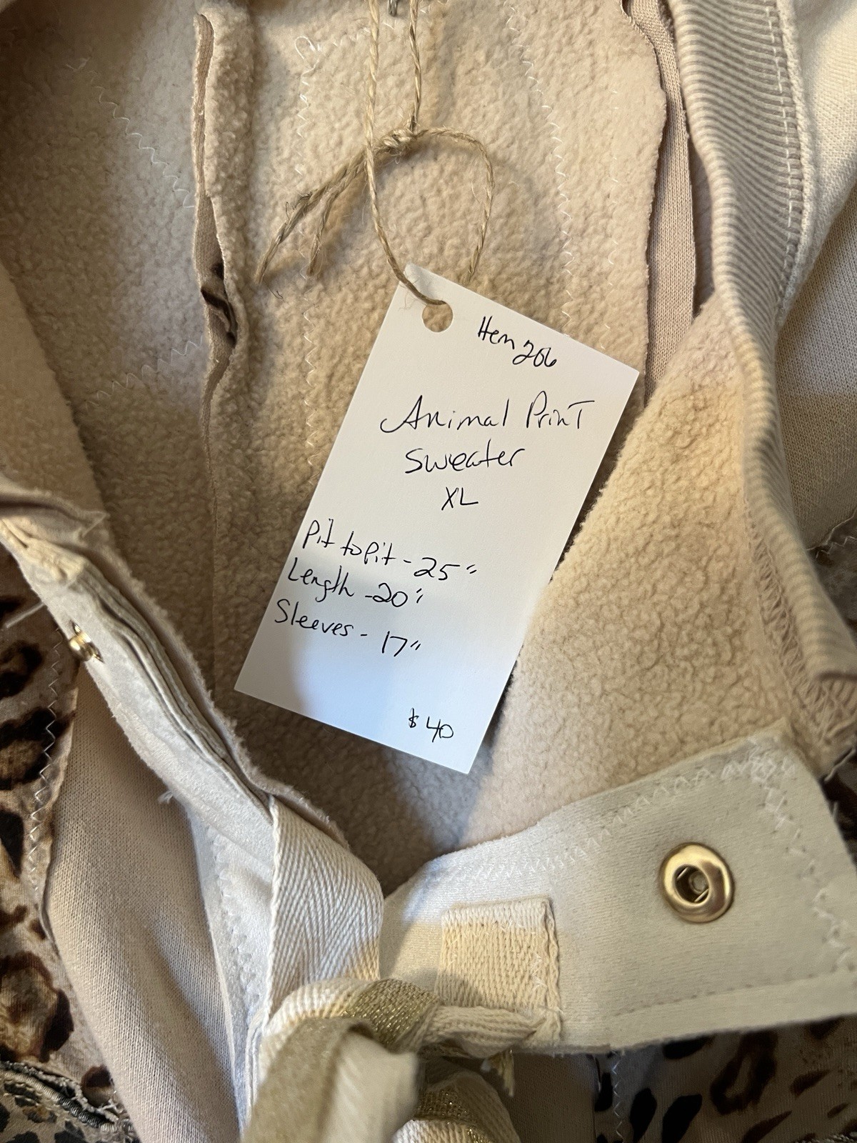 The Animal Print Upcycled Sweater is a stylish and sustainable choice for plus-size women looking to make a statement with their wardrobe. The sweater features a bold animal print pattern in shades of brown, perfect for those who want to showcase their love for animals through their clothing choices. Made from upcycled materials, this cardigan is not only trendy but also environmentally friendly. Perfect for casual or dressed-up occasions, this sweater adds a touch of fun and flair to any outfit. One of a kind upcycled sweatshirt. Measures pit to pit 25 inches. The length is 20 inches and the sleeves are 17 inches. I have also added two pockets.