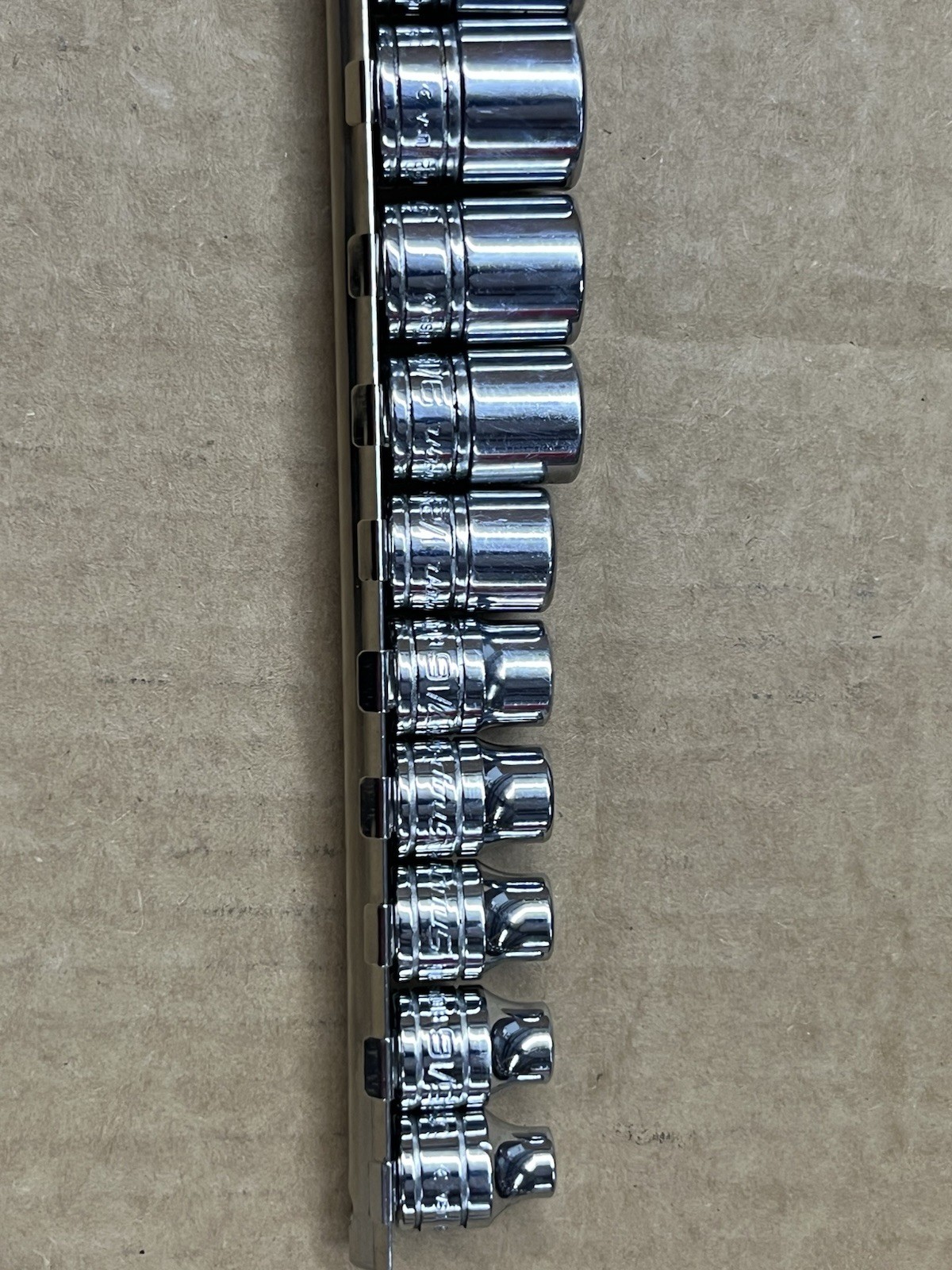 Snap On Tools NICE! 3/8dr Chrome Shallow 12pt Sae Socket Set like when bought from snap on only used few times nicee, I do think there is light marks on 1inch socket please see pics I wil add more