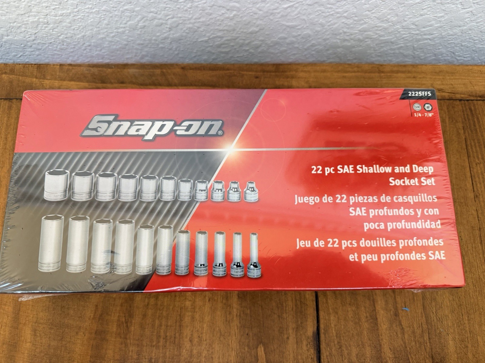snap-on tools USA 222SFFS 3/8" drive deep shallow socket set sae chrome 6 point