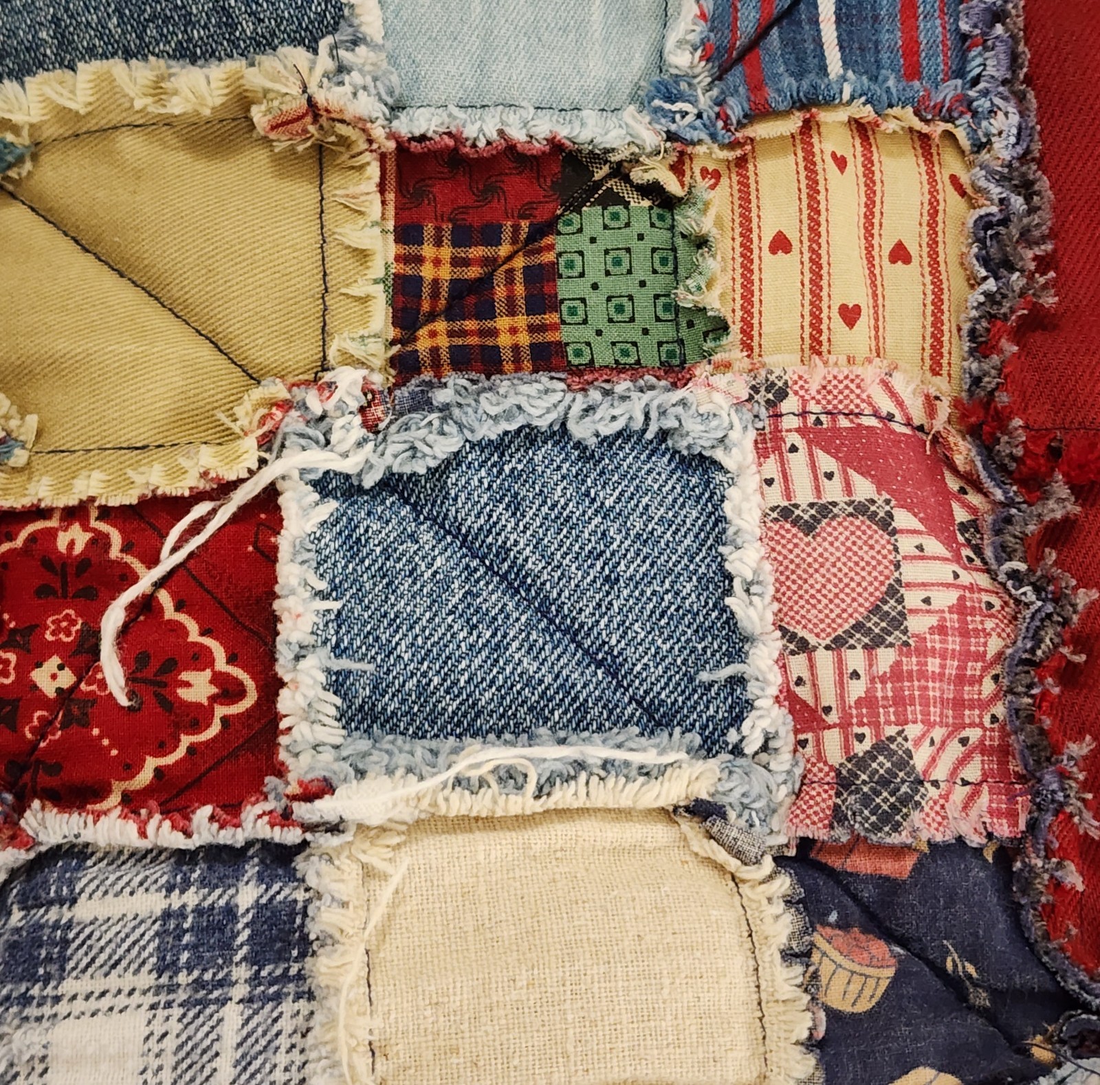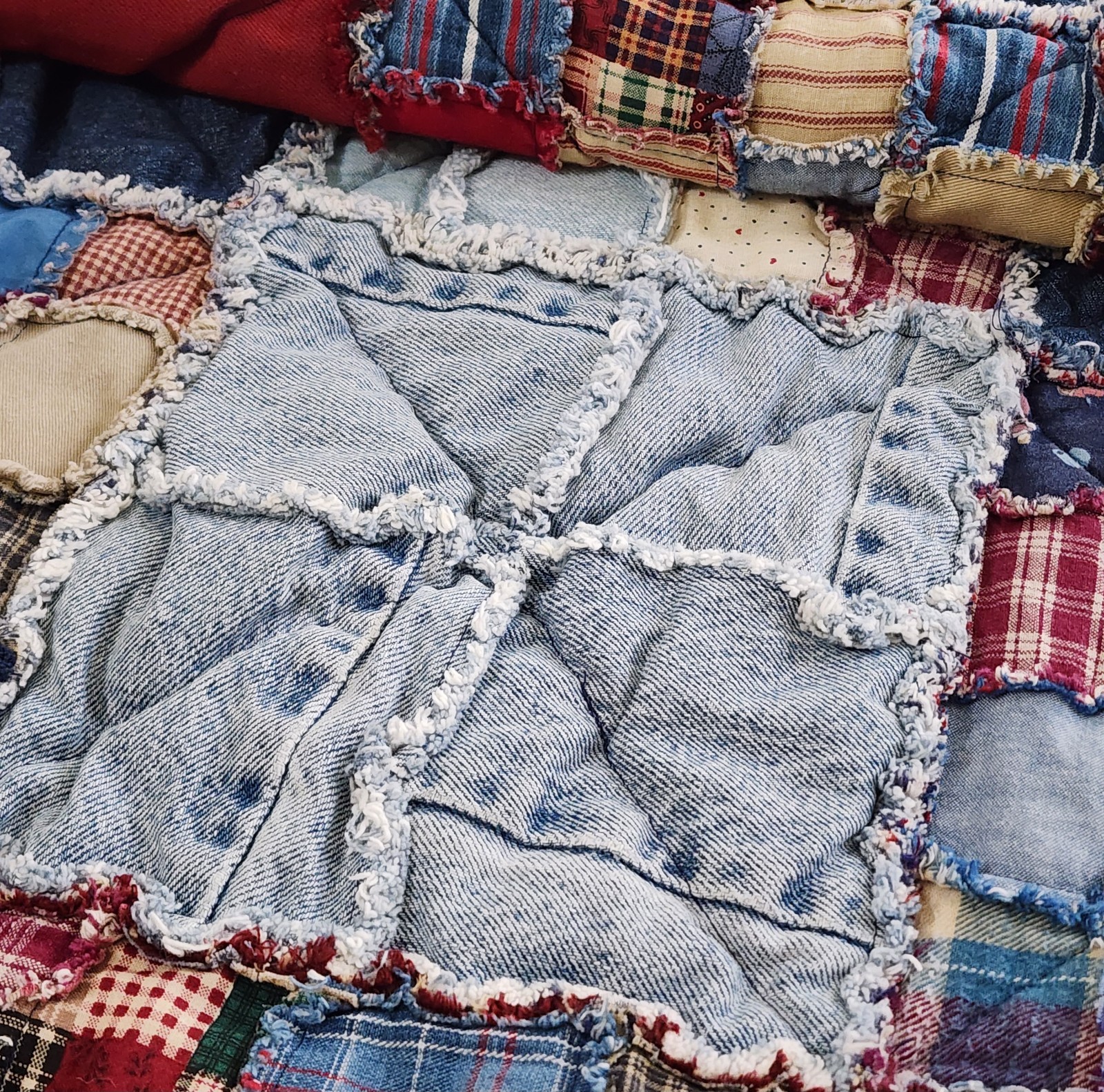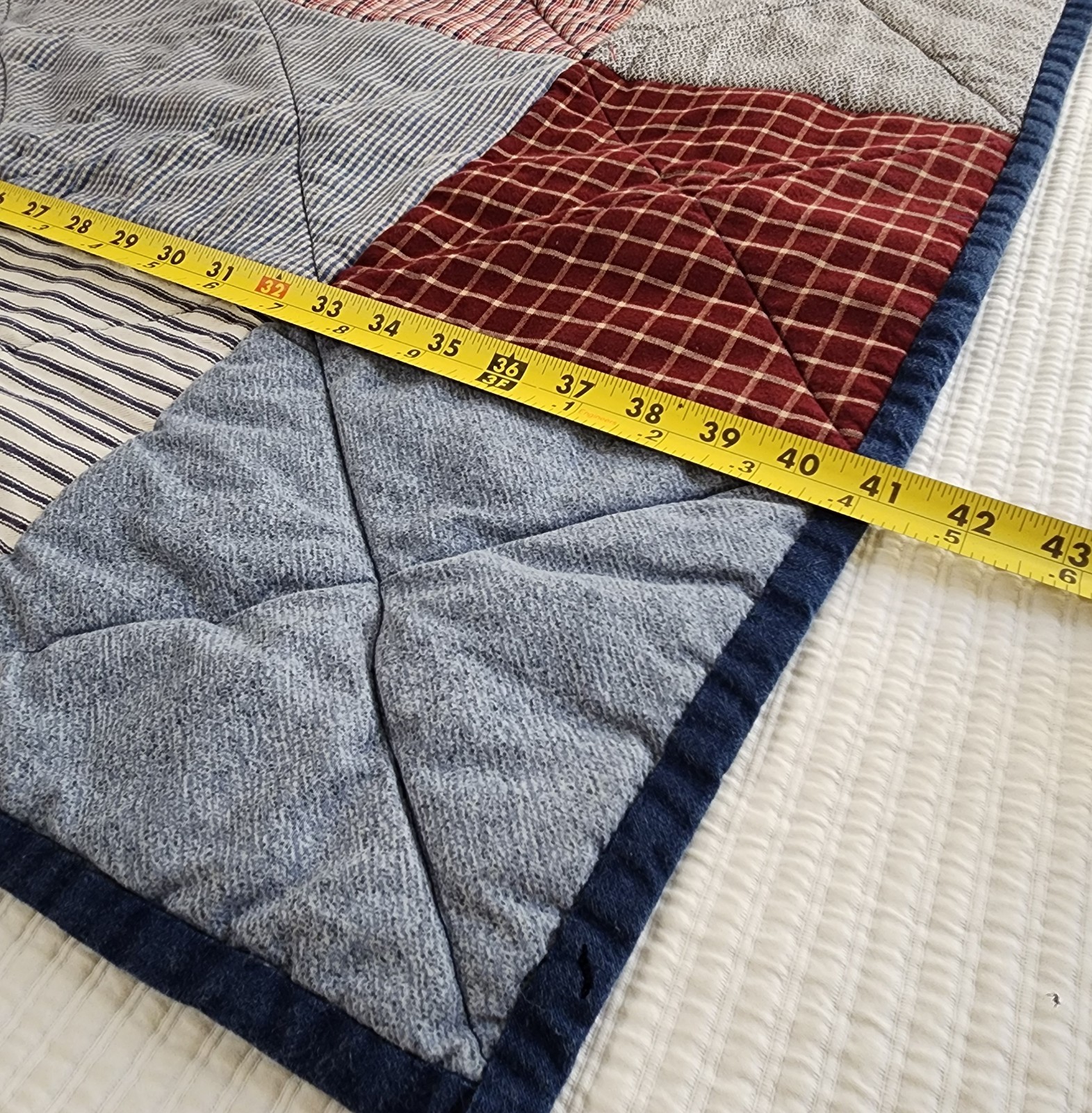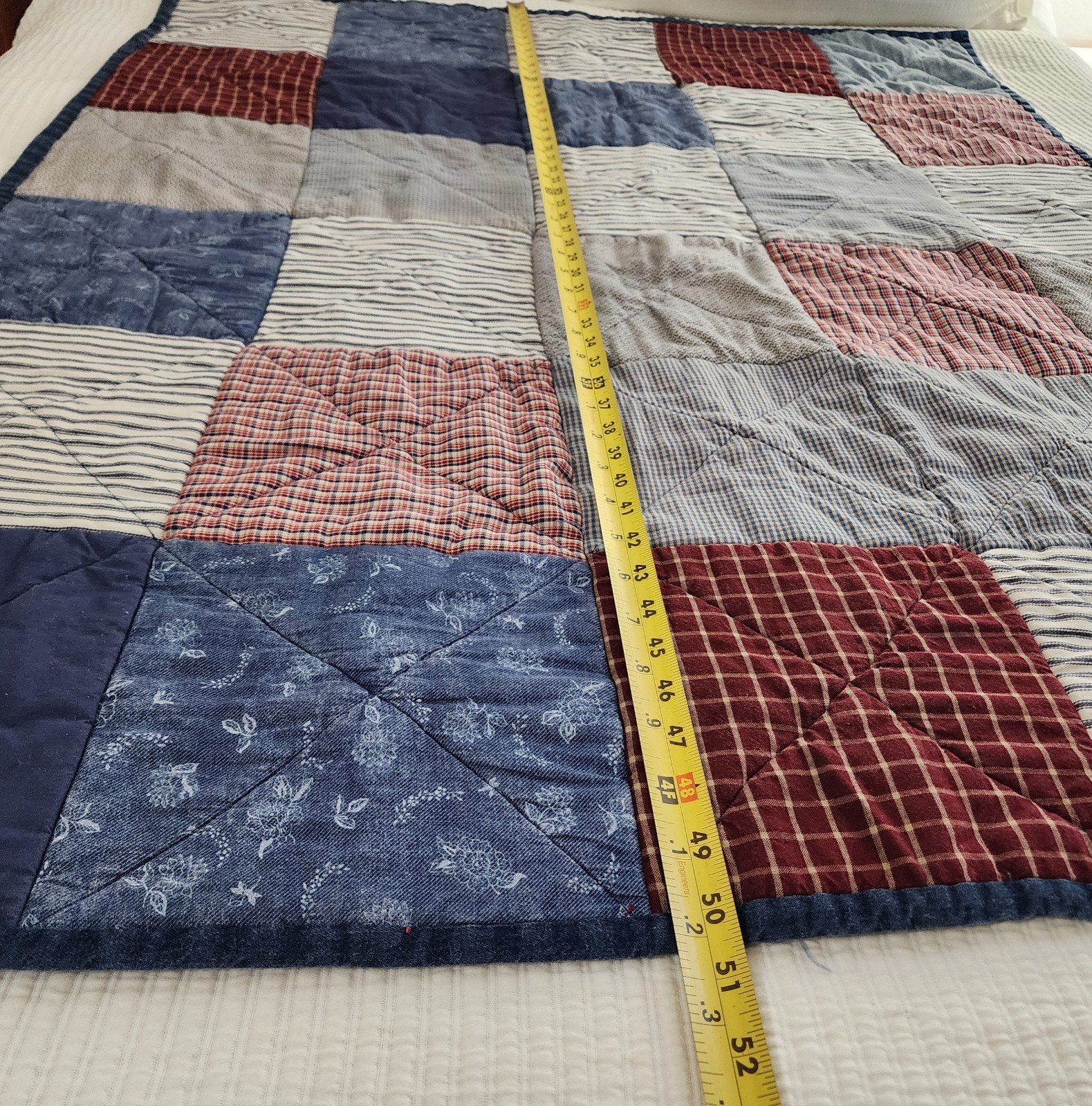 Handmade Denim Rag Quilt Throw Upcycled Jeans Patriotic USA Denim Plaid 50X41"