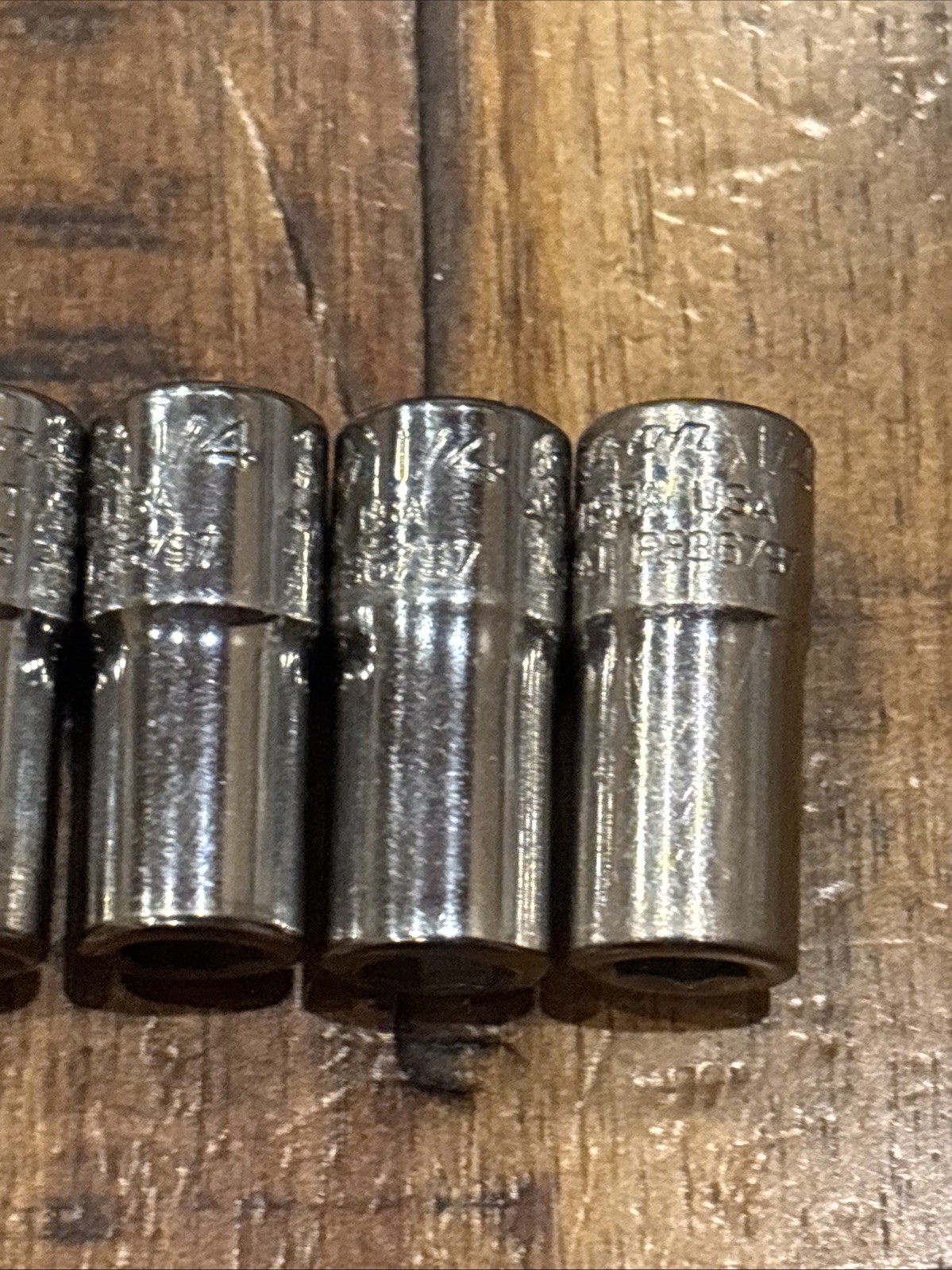 Snap-On Tools 1/4" Drive 1/4" Hex Magnetic Bit Holder Sockets 9pc 6pt USA SAE