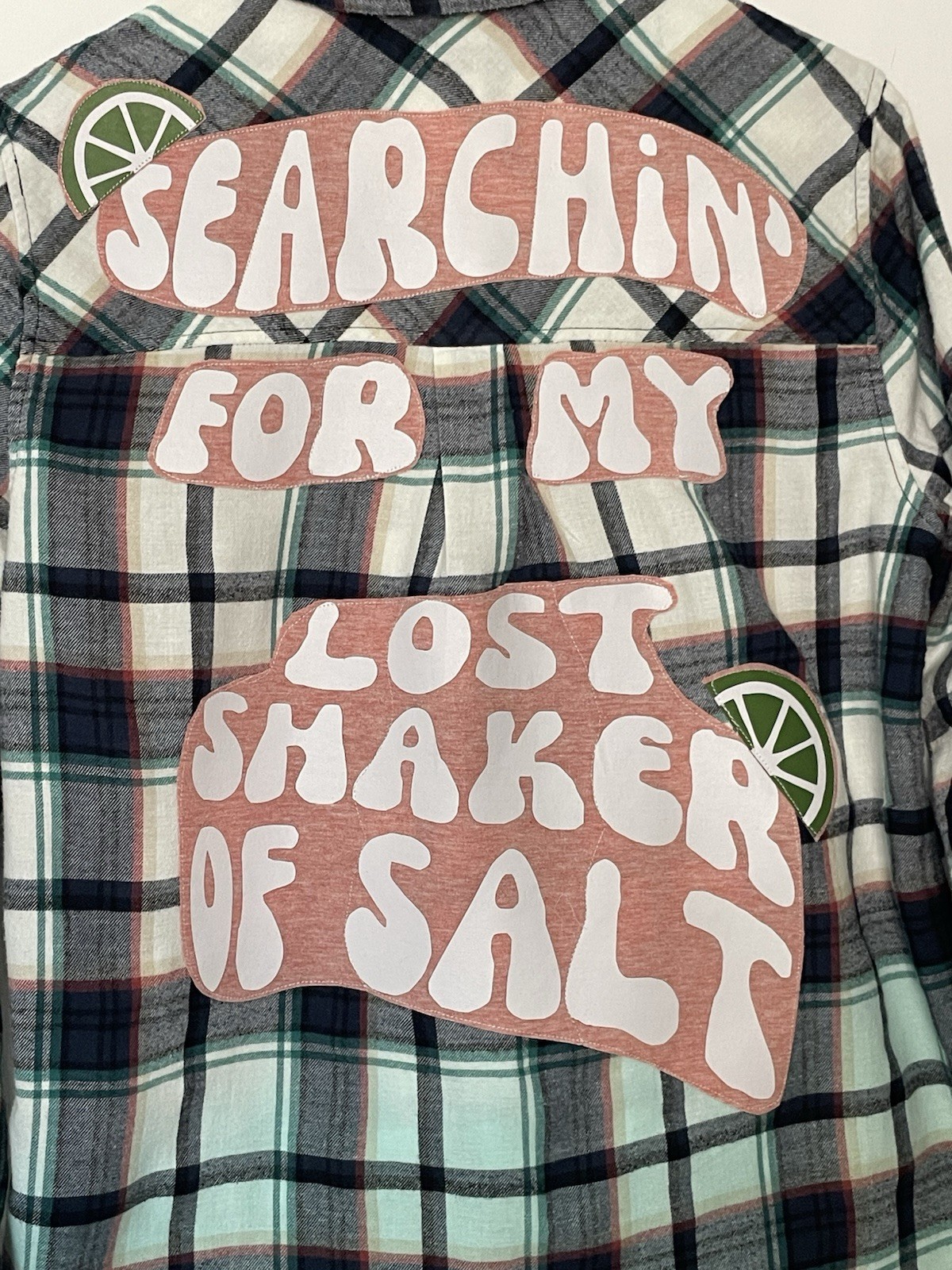 OOAK Upcycled Flannel Shirt “Lost Shaker Of Salt” Forever 21 Sz L Repurposed
