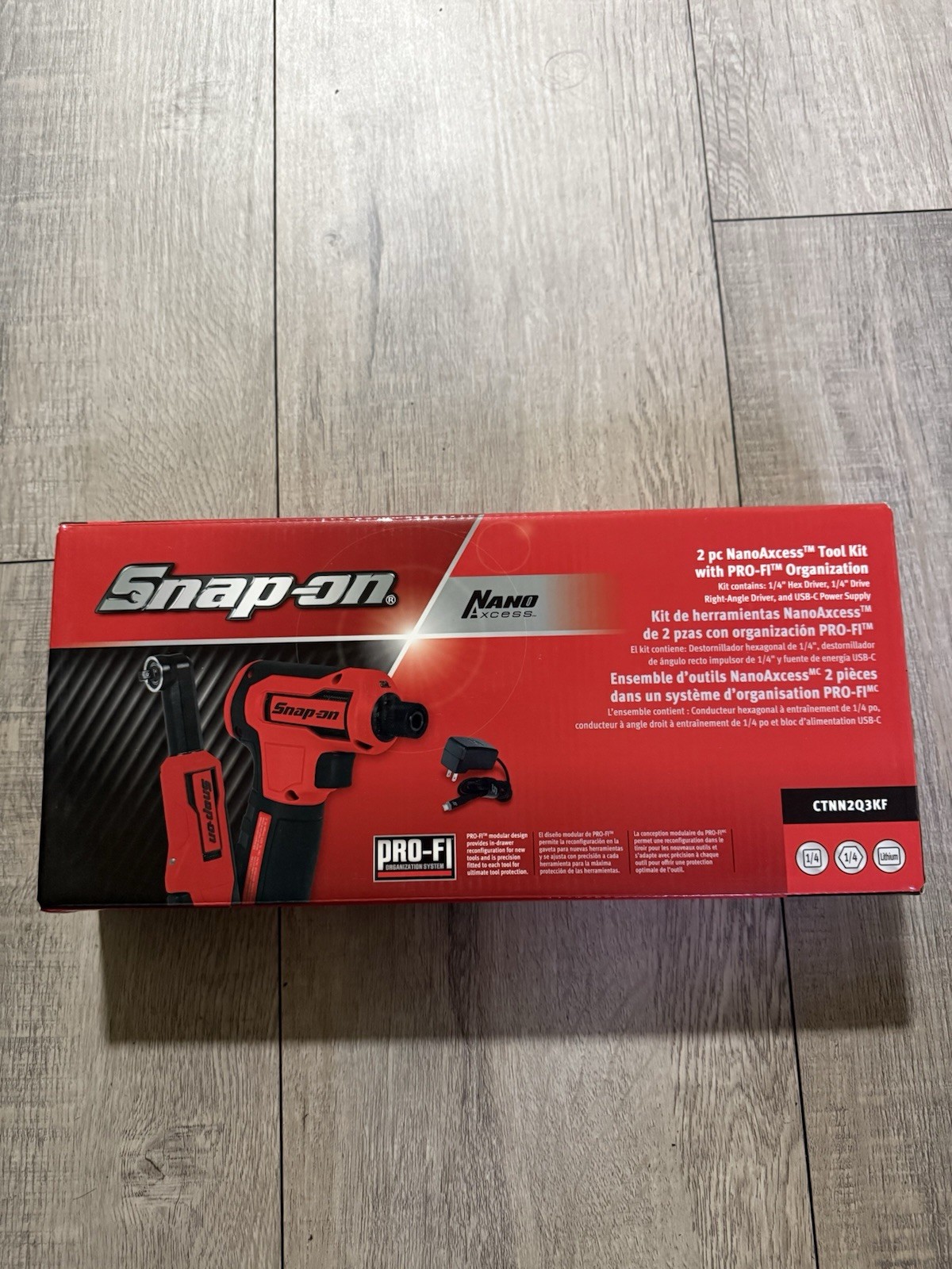 The SNAP ON 2Pc NanoAxcess Tool Kit is a high-quality set of automotive hand tools designed for professional use. Made by Snap-on, a trusted brand known for their durable and reliable products, this kit includes a 1/4 hex right angle driver. The tools are organized in a Pro-Fi container for easy storage and access. With a manufacturer part number of CTNN2Q3KF and a country of origin in China, this kit is a great addition to any automotive tool collection. Additionally, it is certified with a California Prop 65 warning for safety.