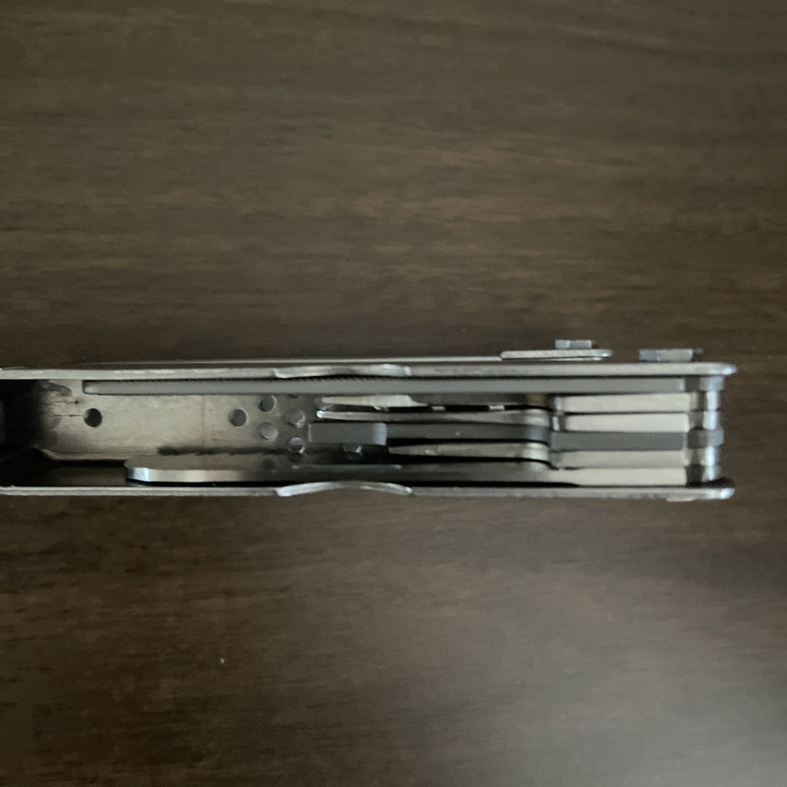 The SOG Pocket Power Plier Folding Multi Tool is a versatile and compact tool that includes 12 different functions, such as a plier, knife, wire cutter, ruler, and bottle opener. Made of durable stainless steel, this multi-tool is designed for camping, hiking, and outdoor activities. Proudly made in the United States by the reputable brand SOG, this tool comes with a convenient box for easy storage and transport. Its high-quality construction and practical features make it a reliable companion for any adventure. Please review the pictures. Thanks for looking.