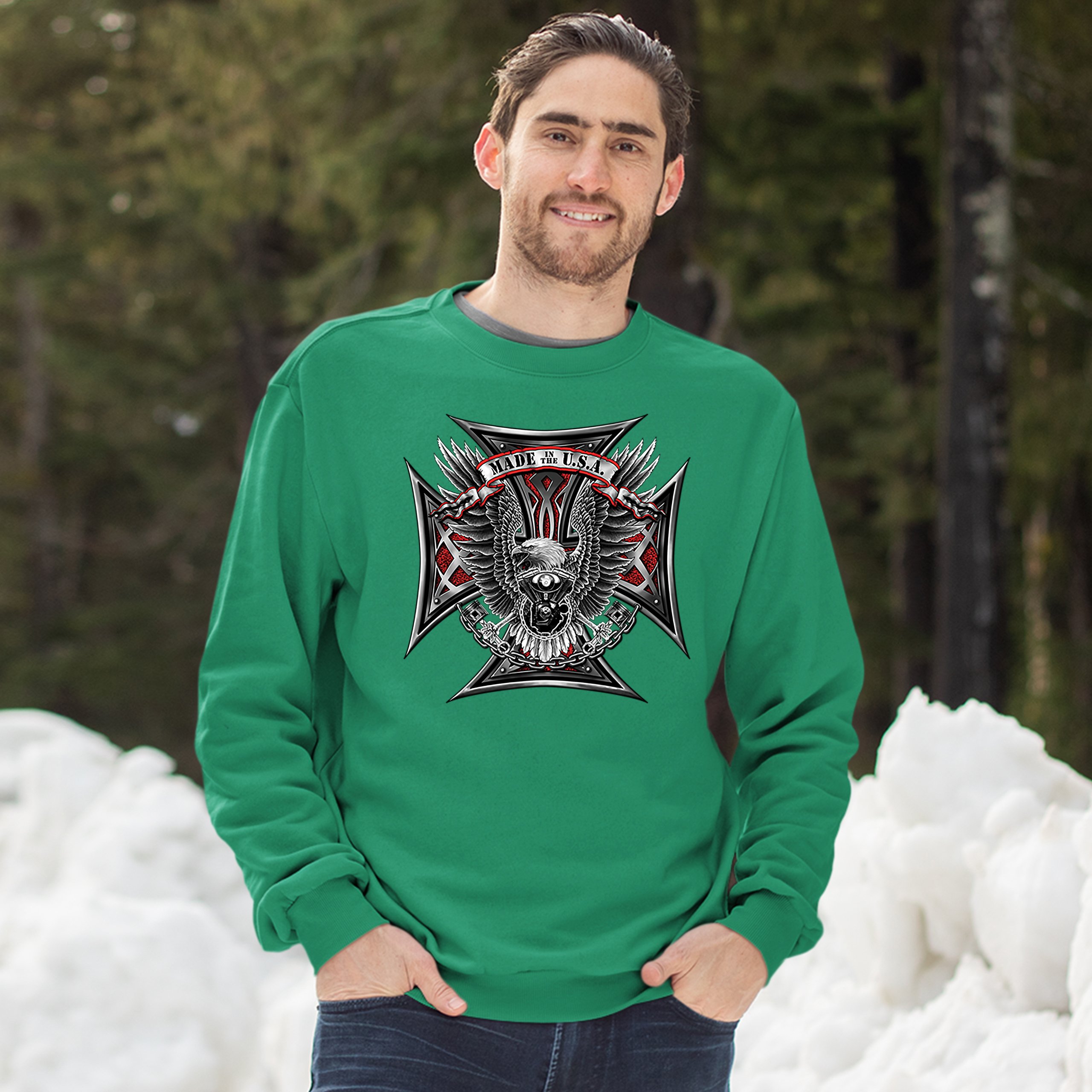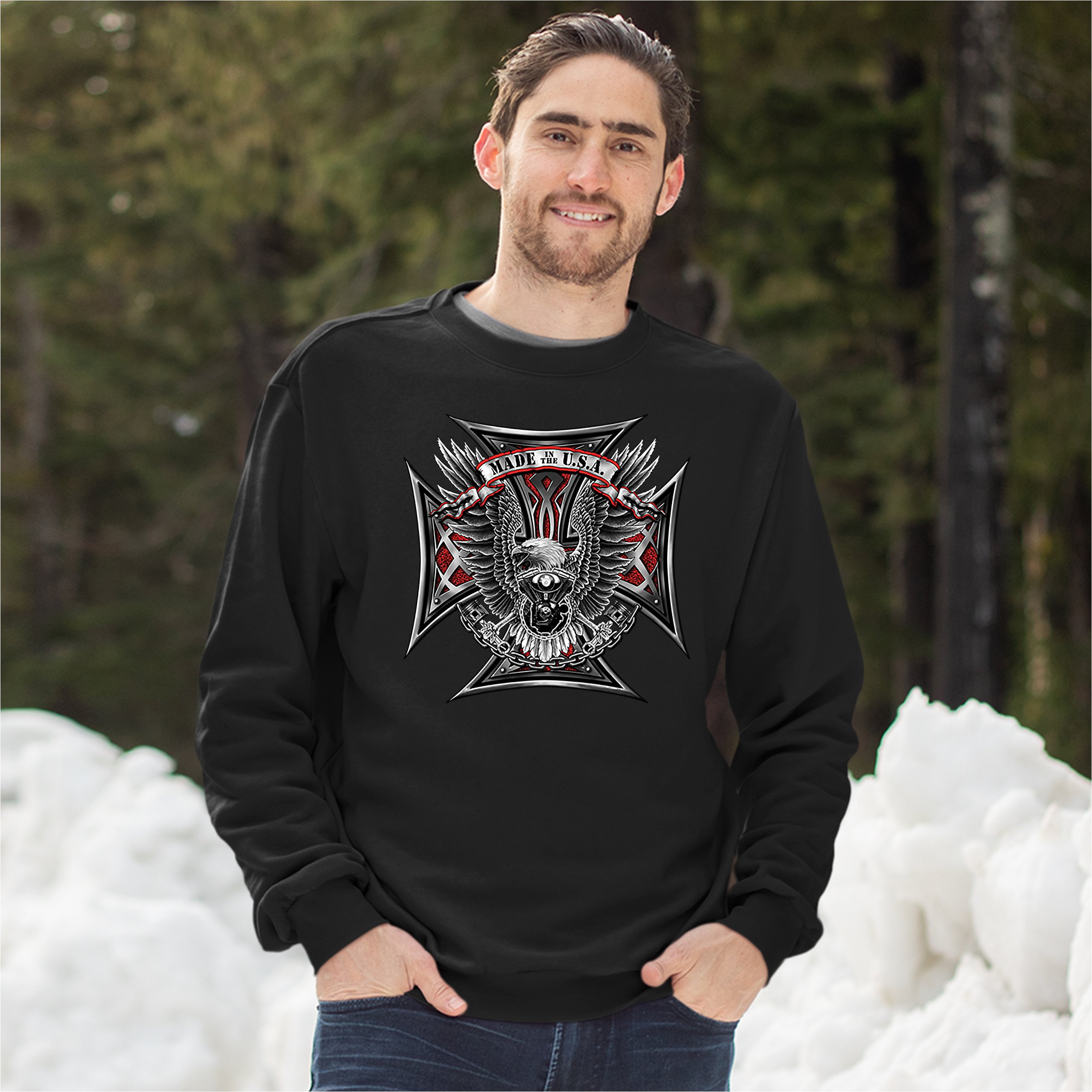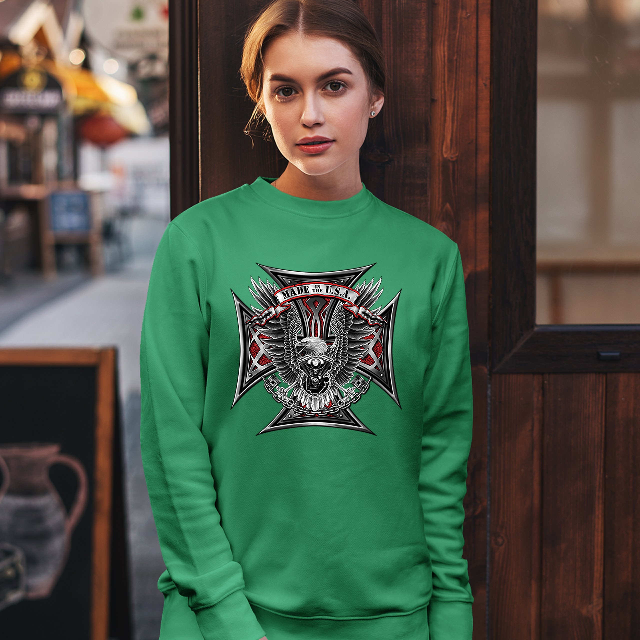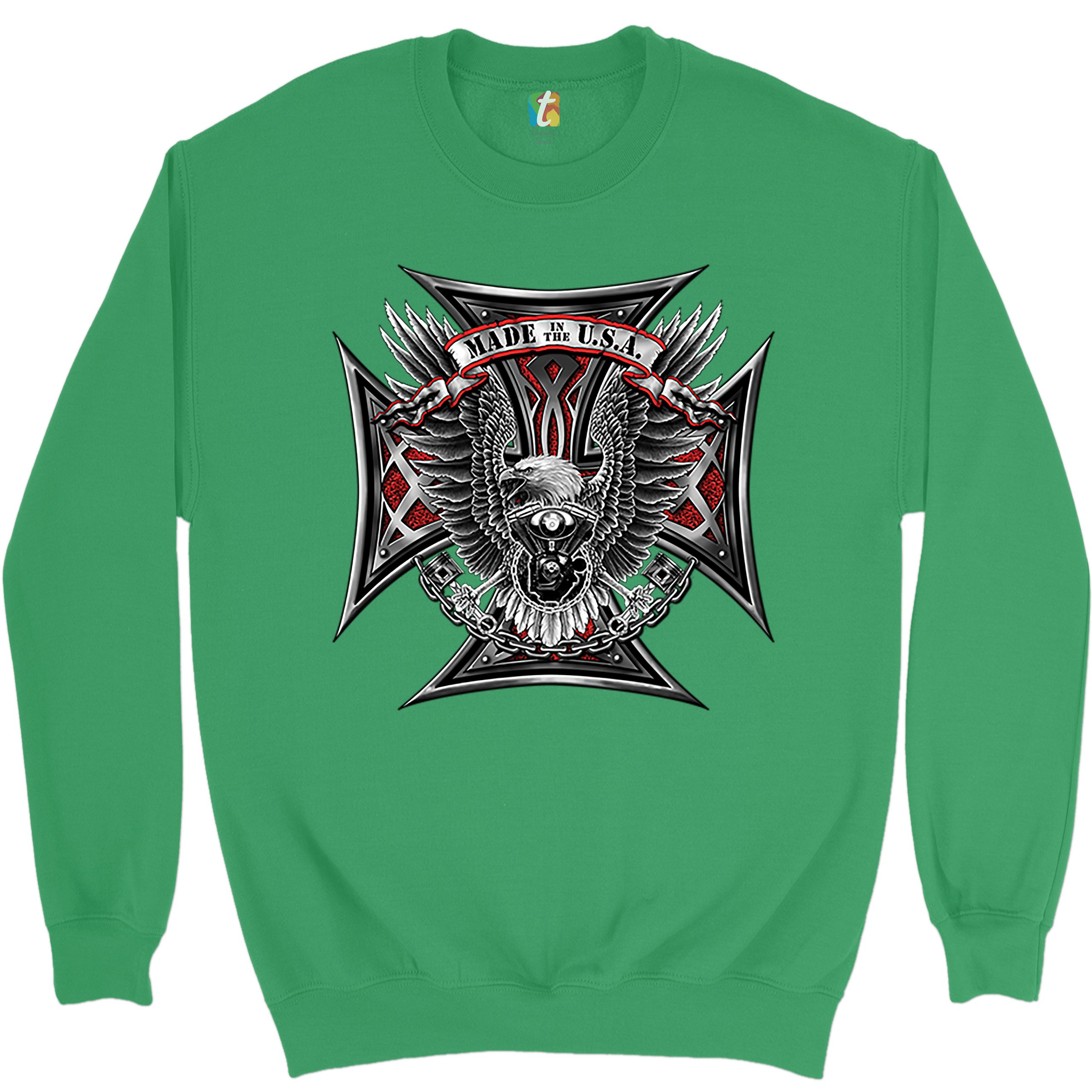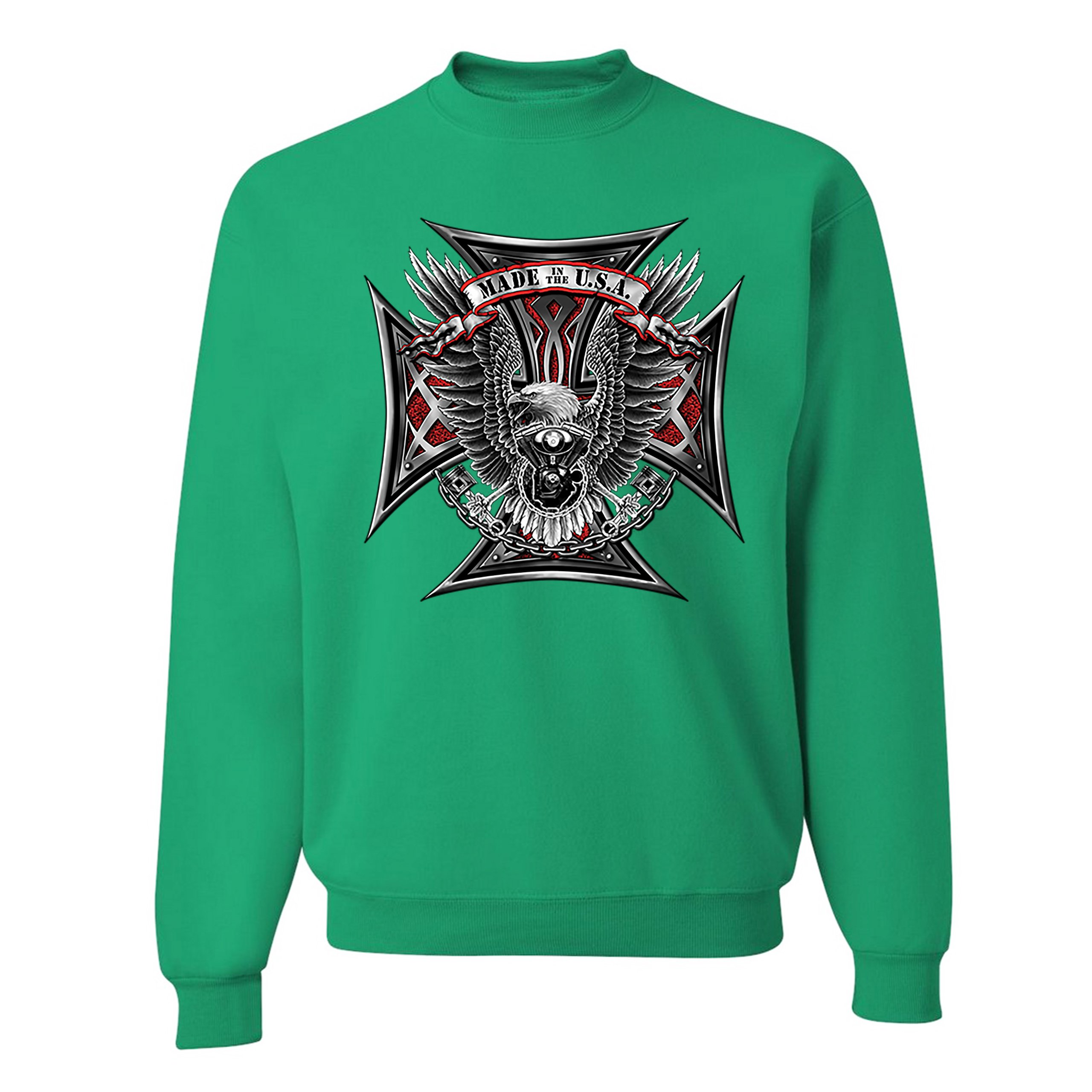 Made in the USA Biker Cross Sweatshirt American Eagle Motorcycle Crewneck