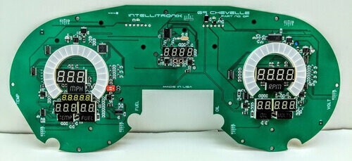 Add panache to your 1969 Chevelle with this 1969 Chevelle LED Digital Replacement Gauge Panel by Intellitronix and make all your friends envious. The 69 Chevelle dash features a direct fit printed circuit board, a custom fit "smoked" plexiglass face plate, universal temperature, oil pressure, and speedometer sending units with sender and sensor for vehicles without electronic transmission or cruise control.