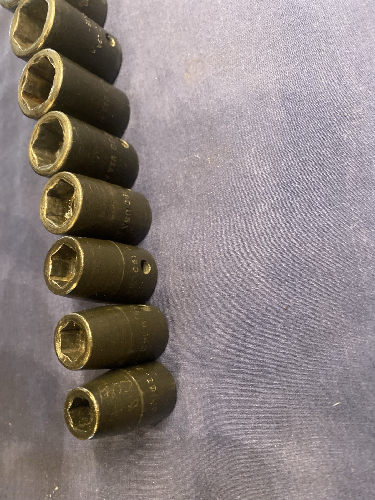 Excellent set of black oxide impacts with no engravings or etchings from the previous owner. I am listing below the parts for the 20 piece set sold at Snap On 320IM. this set is minus the 7 larger sizes which is indicated below.