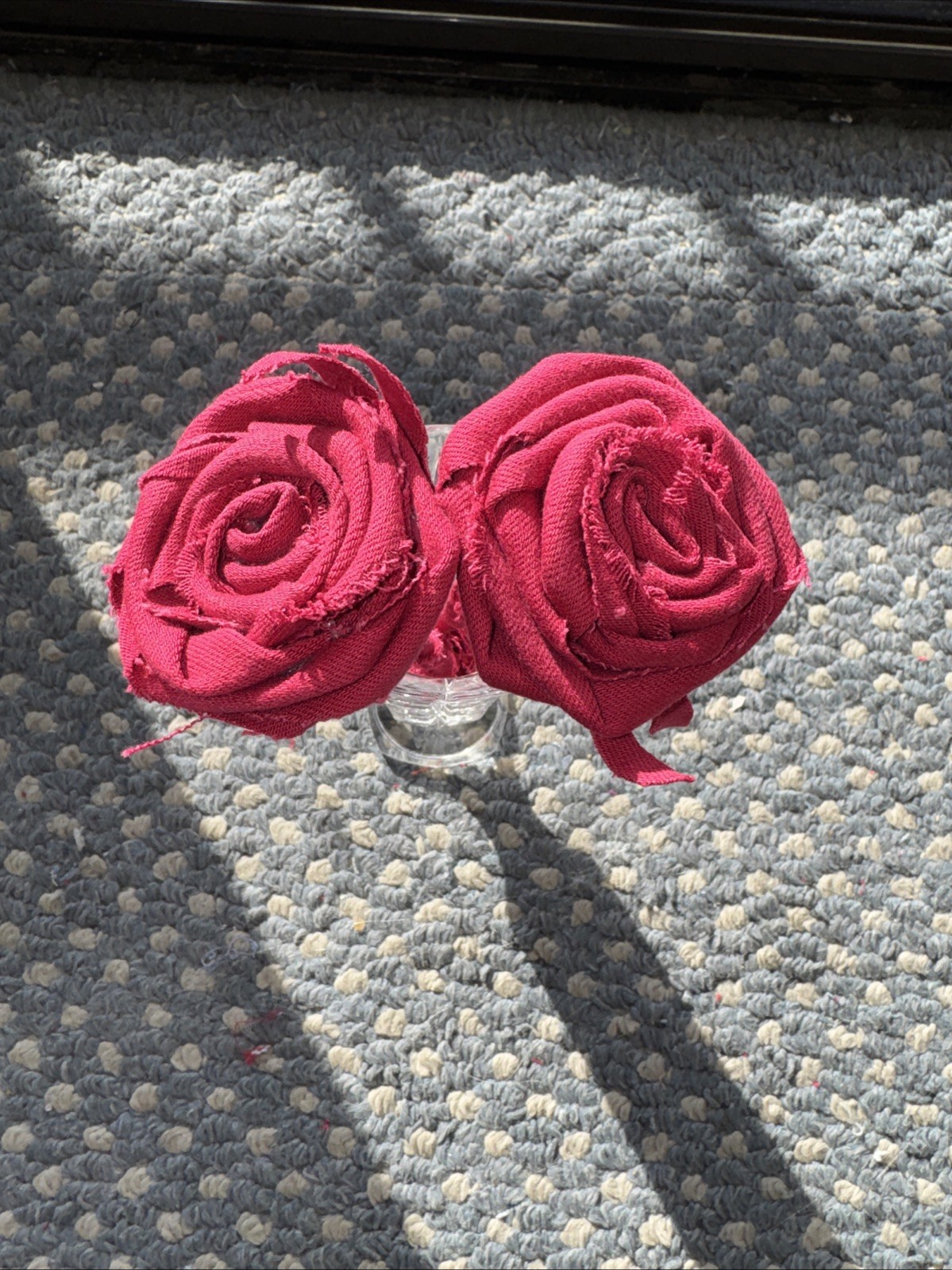 The use of red roses symbolism and the theme of endurance through upcycling denim gives this floral décor a special appeal for Valentine's Day or any special occasion.