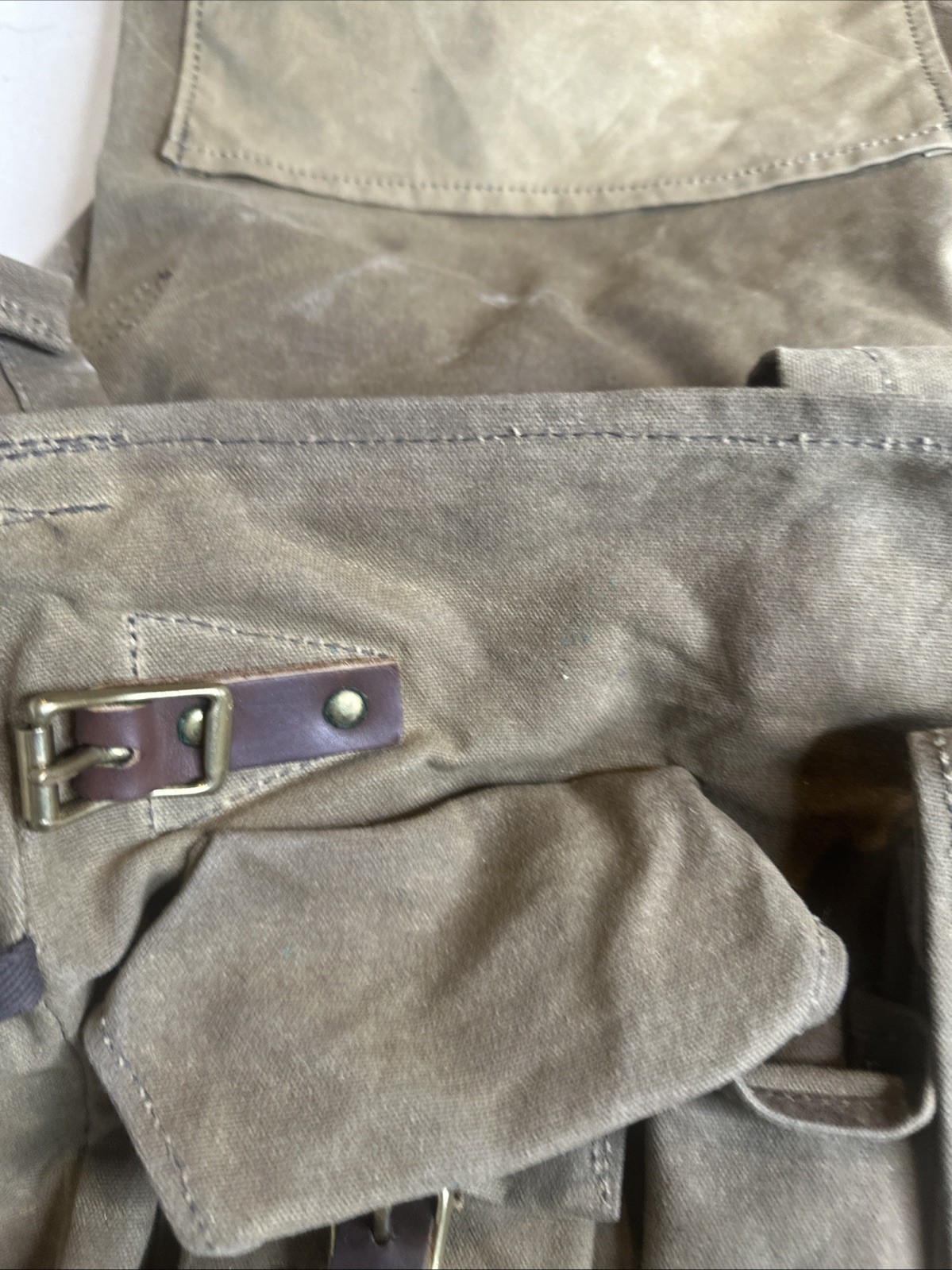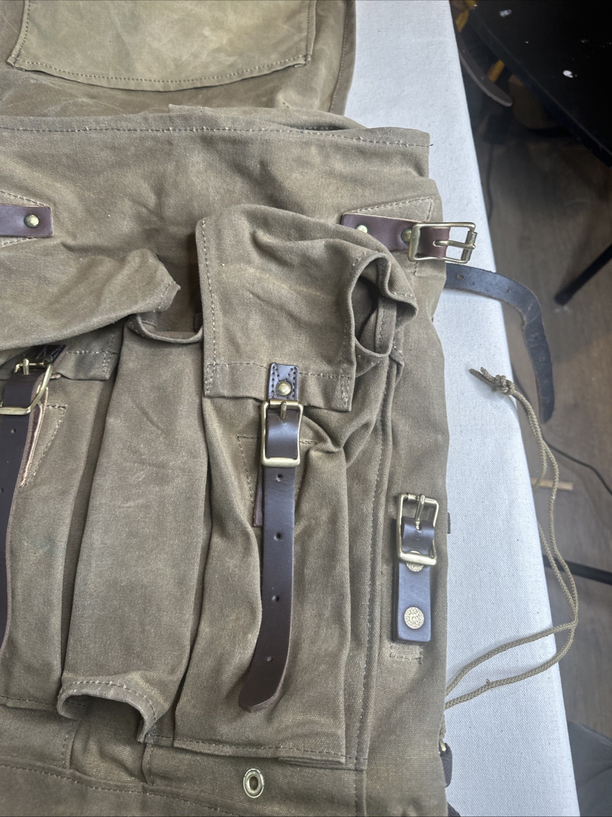 This pack was used for 1 trip, all the stitching buckles are like new. Small bit of I believe burnt marshmallow on the bottom corner otherwise super clean no tears or ripped seams.
