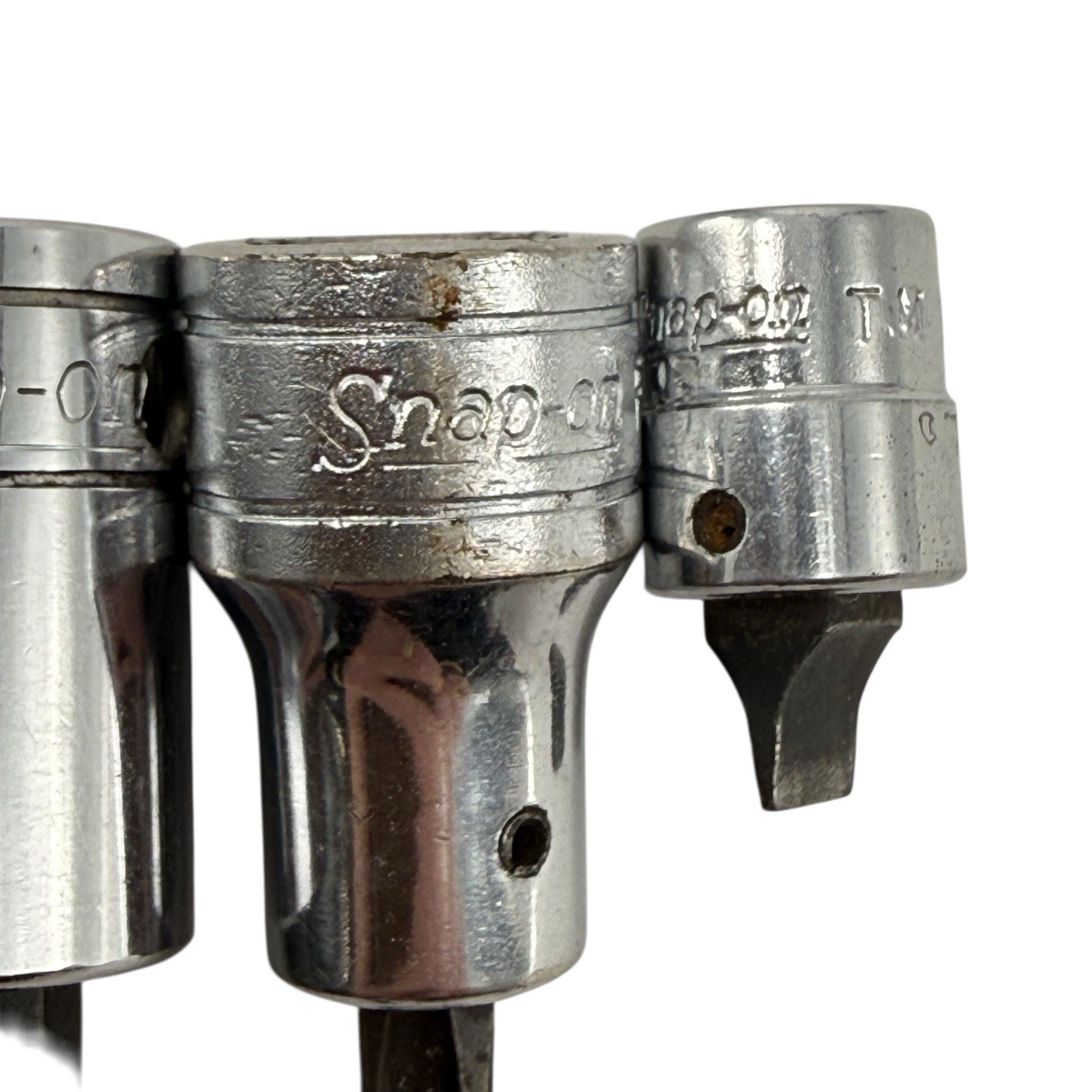 We are offering this 4 piece Mixed Lot of Snap-On Tools Flat and Phillips Head Bit Sockets.