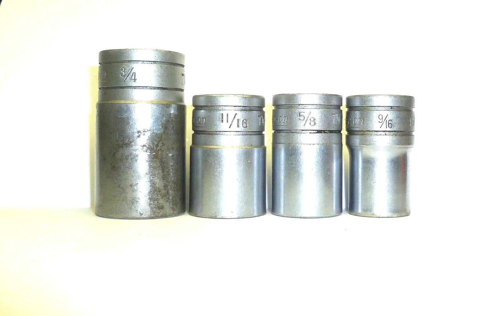 SET OF 4 SNAP ON TOOLS 1/2" DRIV E 6 POINT SOCKETS 3/4" 11/16" 5/8" 9/16"