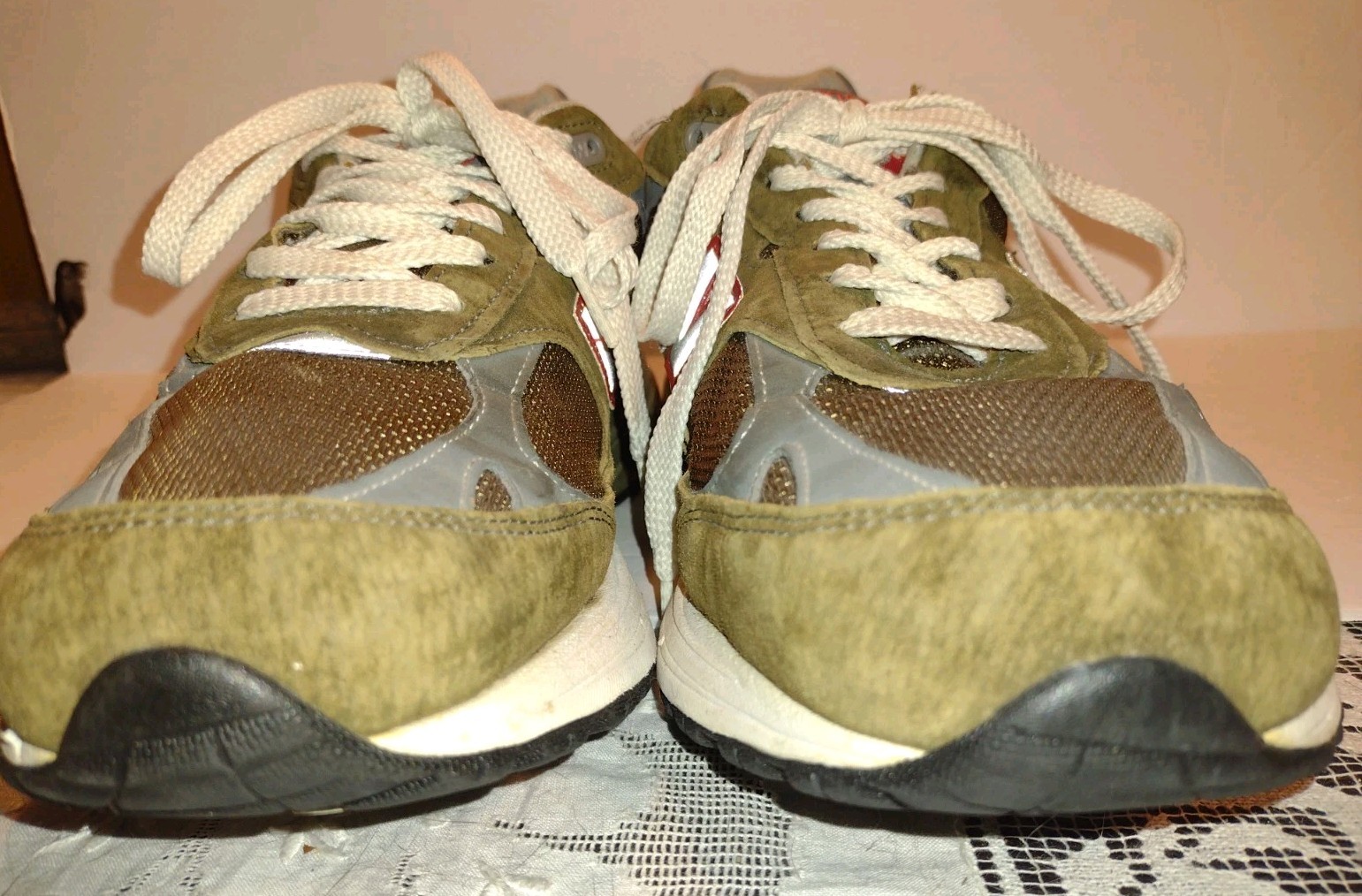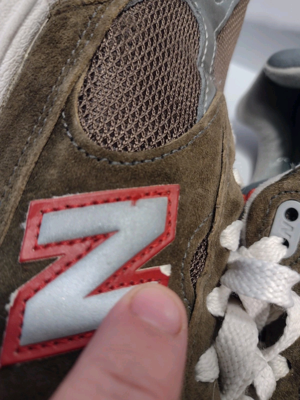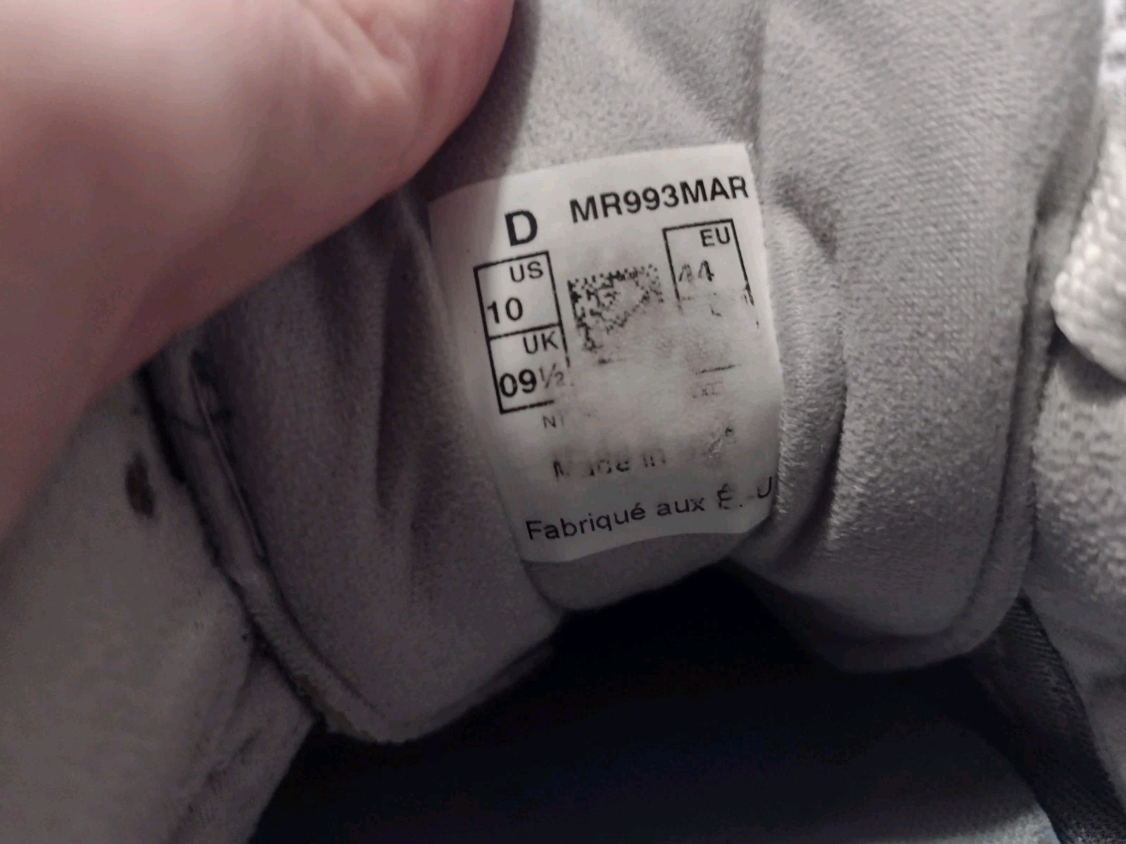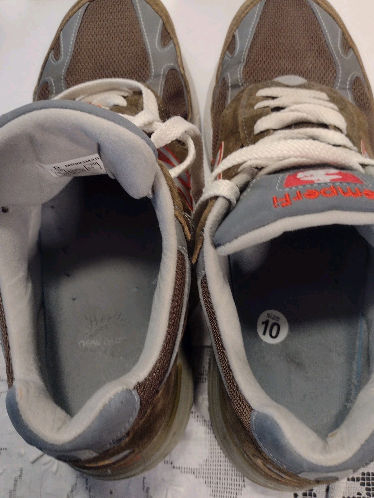 - Light interior wear near the top lace area on each shoe where a small bit of foam is visible — common on 993s and not noticeable when worn.