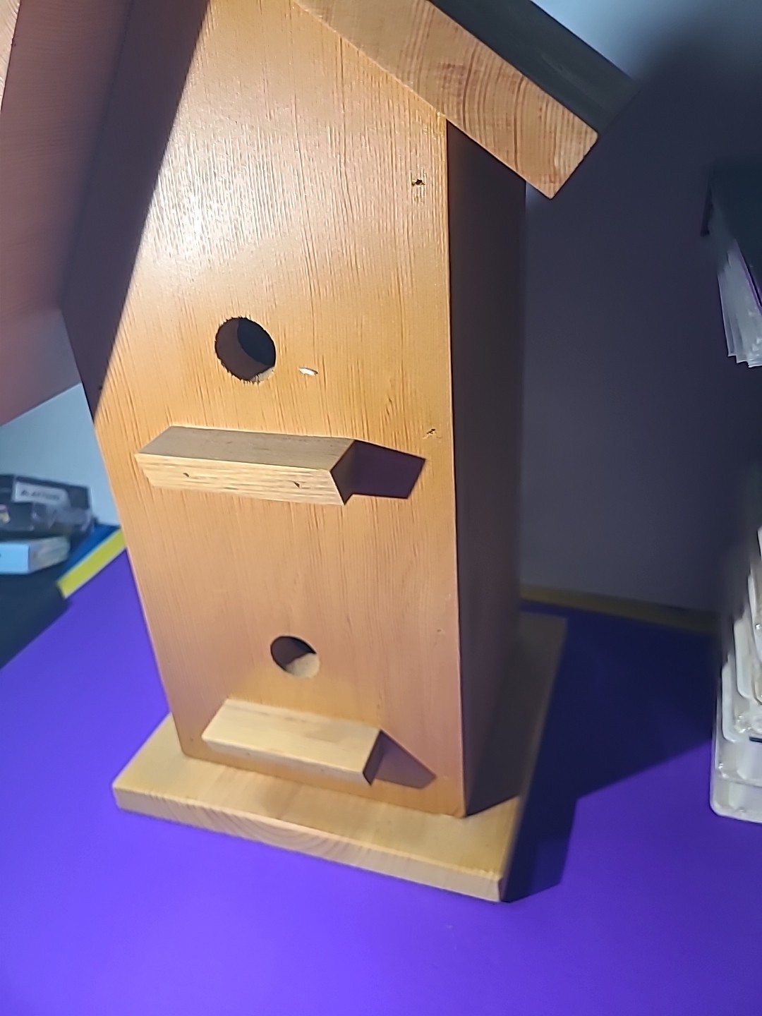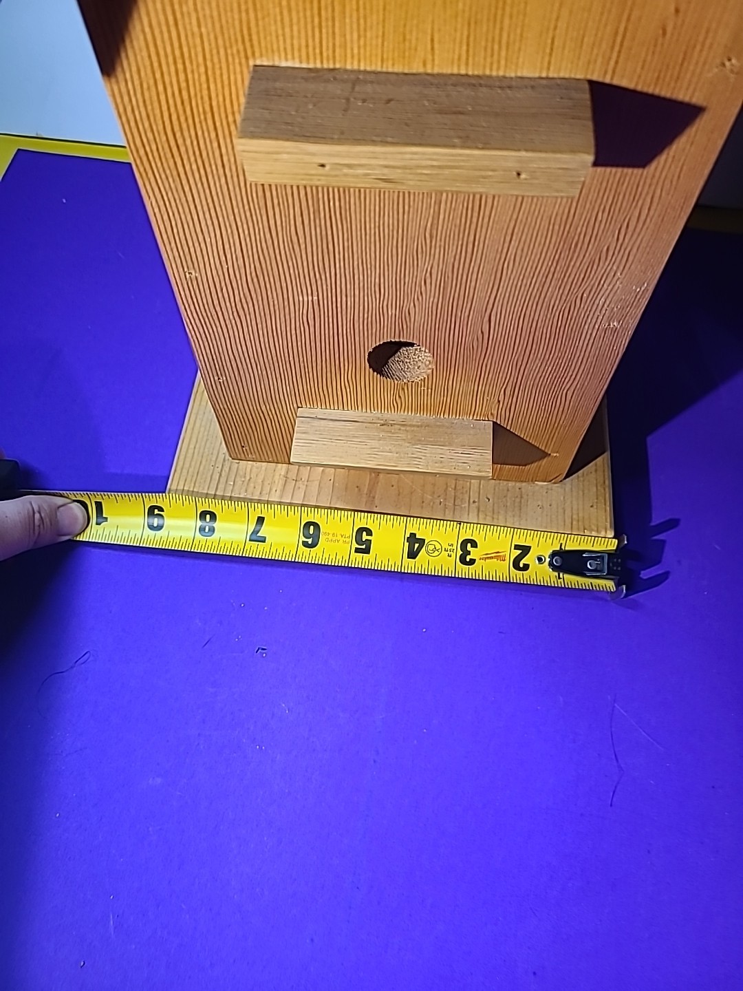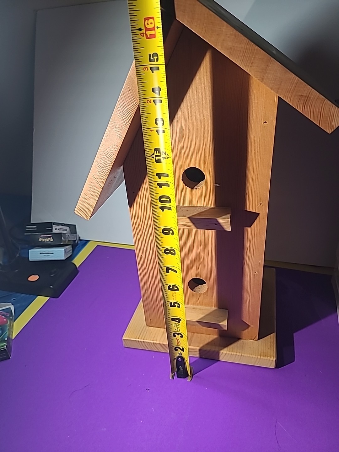 This handmade birdhouse by Calhoun Creations is proudly made in the USA from treated wood, ensuring durability and safety for both the birds and the environment. The medium-sized square-shaped birdhouse in a charming brown color is designed with a front entrance for easy access. With farmhouse style and no assembly required, this handcrafted birdhouse adds a touch of rustic charm to any yard or garden. Perfect for birds and wildlife, this birdhouse is a unique and personal addition to your outdoor space. The house measurements look at pics . Where birds live is 6 an half by 6 an half by like 14 at peek .