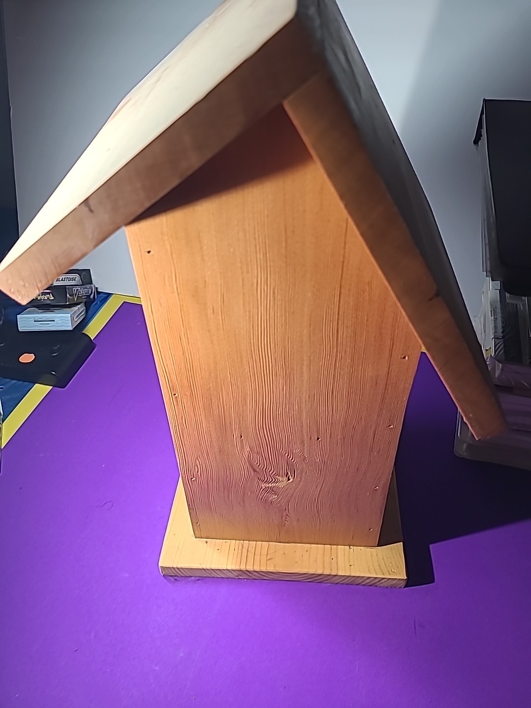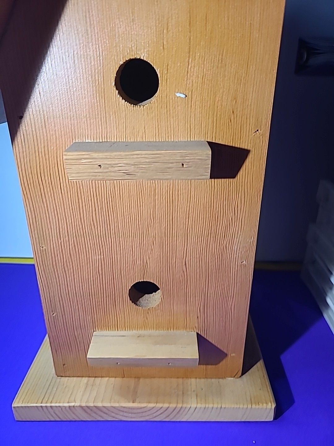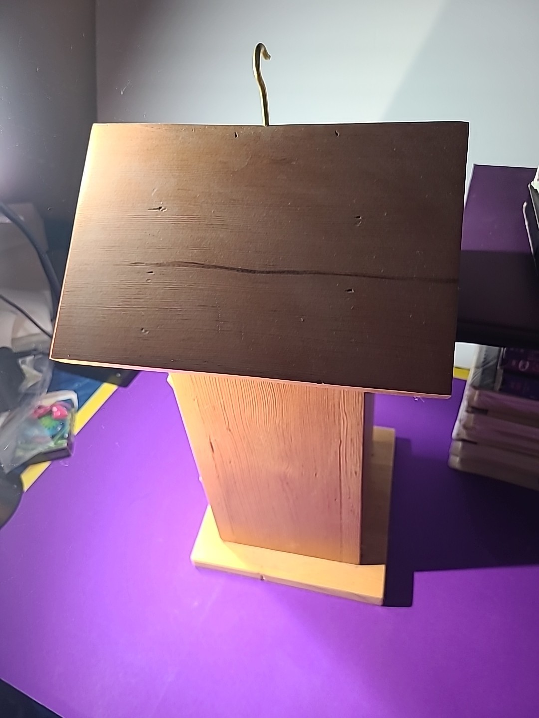 This handmade birdhouse by Calhoun Creations is proudly made in the USA from treated wood, ensuring durability and safety for both the birds and the environment. The medium-sized square-shaped birdhouse in a charming brown color is designed with a front entrance for easy access. With farmhouse style and no assembly required, this handcrafted birdhouse adds a touch of rustic charm to any yard or garden. Perfect for birds and wildlife, this birdhouse is a unique and personal addition to your outdoor space. The house measurements look at pics . Where birds live is 6 an half by 6 an half by like 14 at peek .
