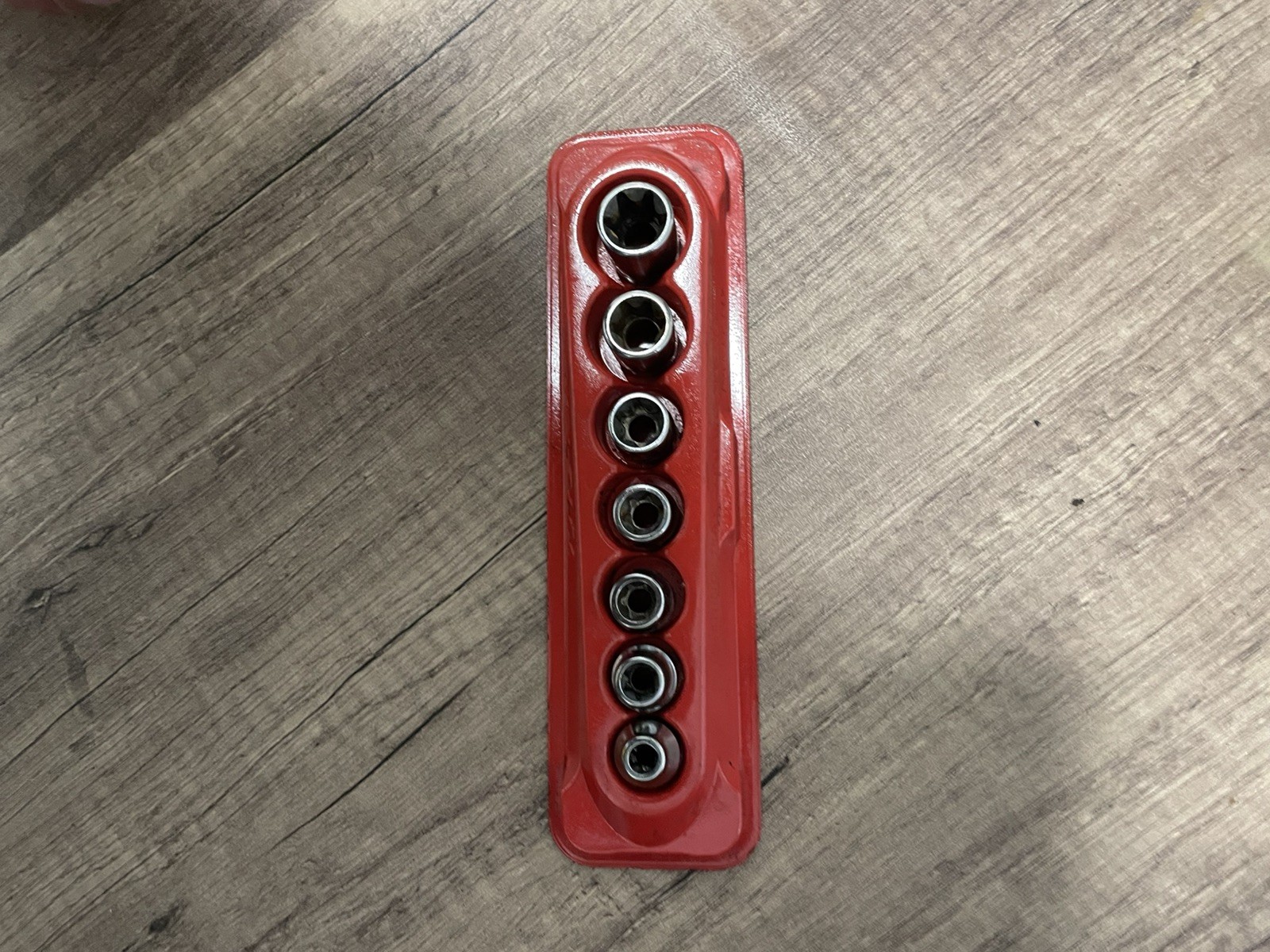 The Snap On 207RFLE 7 Piece Low Profile Inverted TORX Socket Set is a high-quality hand tool designed for automotive use. Made by the reputable brand Snap-on, this set includes a variety of sockets with a 3/8 inch drive size, specifically designed for Torx drive types. Perfect for professionals and car enthusiasts, this set is essential for accessing hard-to-reach areas in vehicles and ensuring a secure grip on nuts and bolts. The low profile design allows for better visibility and access, making it a valuable addition to any garage or workshop.